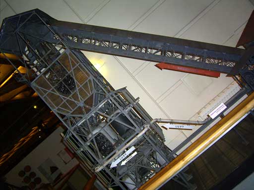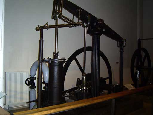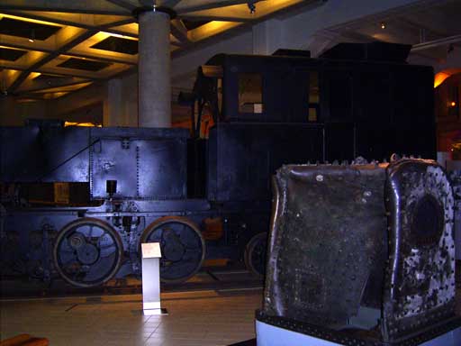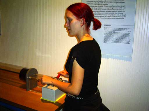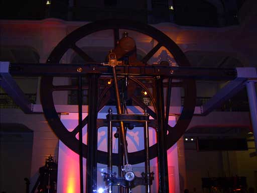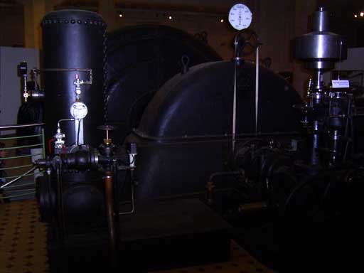 Riesige Motoren am Eingang des Ausstellungskapitels Kraftwerke