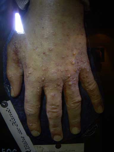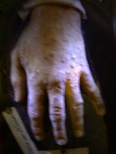 Eine Hand, wurde aufgrund der Zerstörung durch Paraisten amputiert