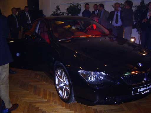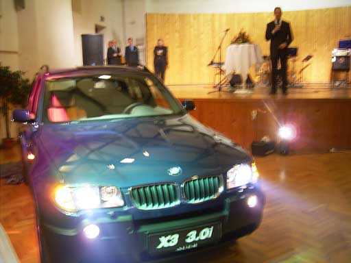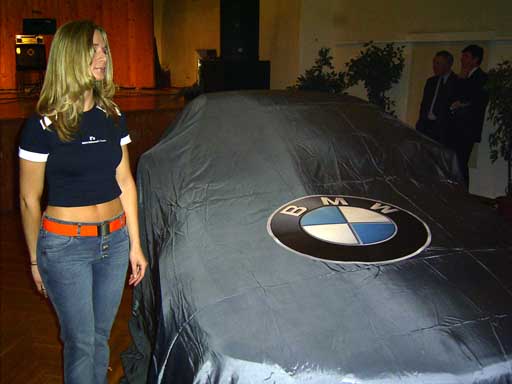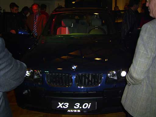 Am 15. Jänner 2004 wurden in der Römerhalle in Mautern (bei Krems) die neuesten Produkte aus dem Hause BMW präsentiert. Vorgestellt wurde der neue Geländewagen BMW X3 (3 Liter Hubraum, VMax 225km/h). Dieser liegt größen- sowie gewichtsmäßig zwischen dem 3er Touring und dem BMW X5. Doch die meiste Aufmerksamkeit widmeten die Leute (mich eingeschlossen) dem neuen BMW 6er, welcher sich in die Reihe der absoluten Luxusschlitten einordnet! Mit 333 PS und geringem Gewicht erreicht er 100km/h in 5 Sekunden.