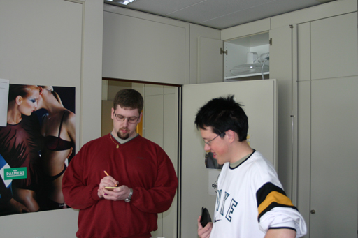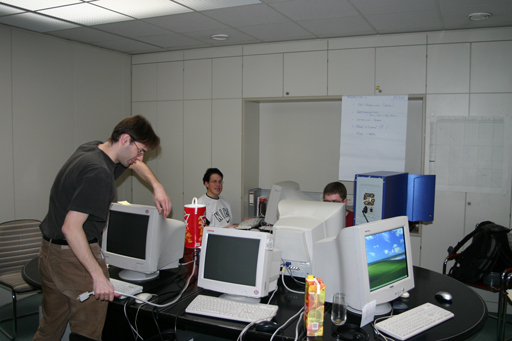 Am Samstag, 13. März 2004, Wirtschaftskammer Österreich: Normalerweise ein verlassener Ort - Doch einige haben dennoch das "Vergnügen" Samstags zu arbeiten: Christian und ich. Um daraus dennoch einen Nutzen zu ziehen, haben wir im Anschluss gleich eine Lan Party veranstaltet und Max & Michael sind am Nachmittag nachgekommen. Fotos geschossen von Christian's Kamera