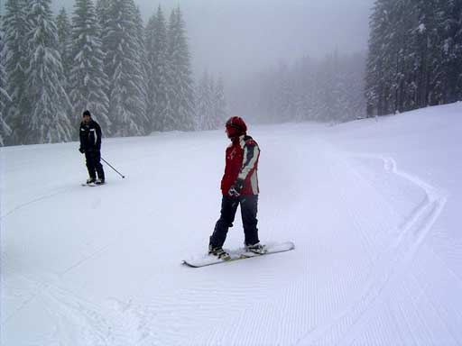 Wieder einmal war es soweit, dass sich am 10. Jänner 2004 zwei St.Pöltnerinnen und zwei Kremser auf den Weg in die Berge begaben: Diesmal auf den Östscher. In der Schitour waren wieder Snowboard, BigFoots und Carver-Schi vertreten. Diesmal unterwegs: Isabel, Birgit, Armin und - oh Wunder - meine Wenigkeit :-)