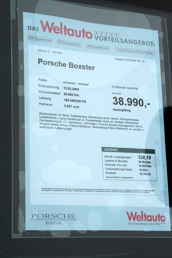 Am 21. Mai 2006 bin ich auf die Porsche Gebrauchtwagen Messe nach Liesing (Wien 23) gefahren! Zu sehen waren neben den Porschemodellen auch ein Lamborghini, mehrere Bentleys und weitere schöne Autos!