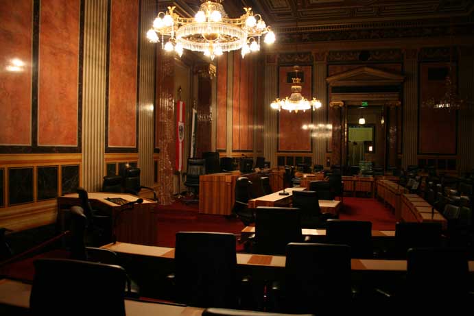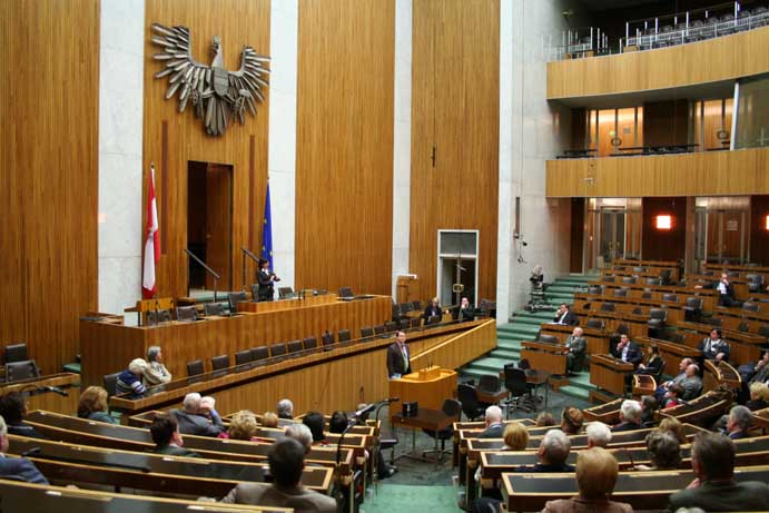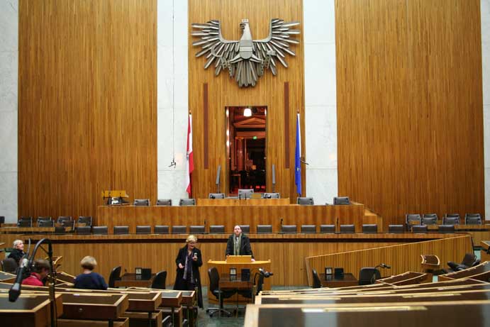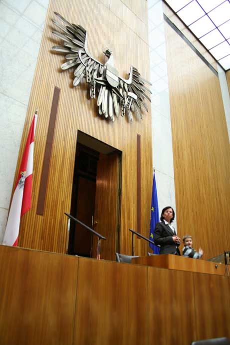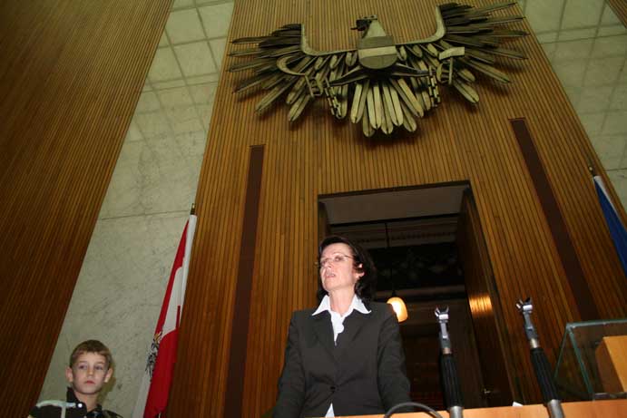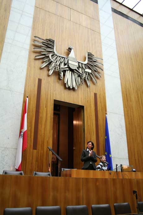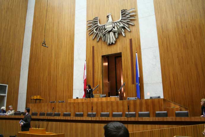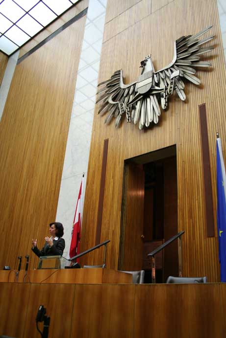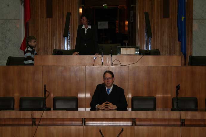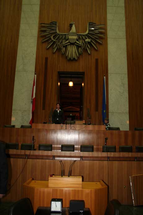 Am 17. Dezember 2007 wurden wir ins Parlament eingeladen. Da es sich um eine geschlossene Veranstaltung handelte, konnte ich diesmal mehr sehen als noch zuvor im Mai 2006. Geführt wurden wir von Nationalratsabgeordneten Gabi Tamandl. Danach wurden wir auf Snacks eingeladen