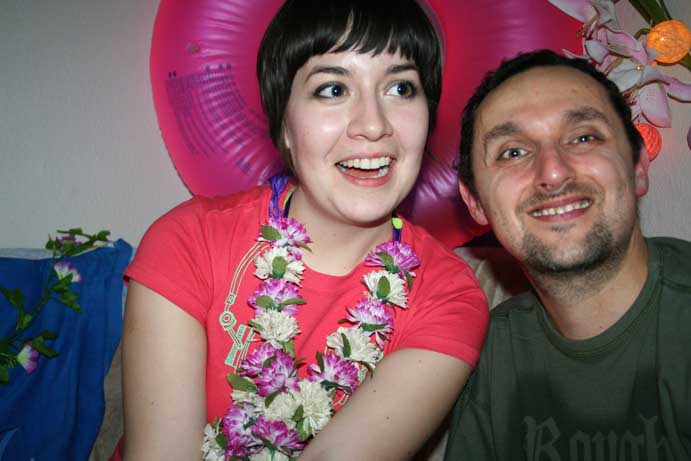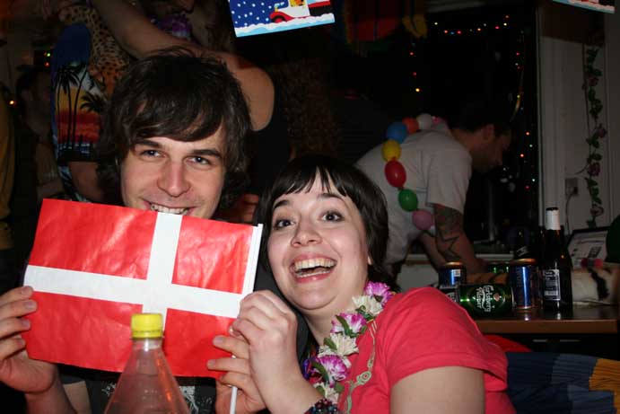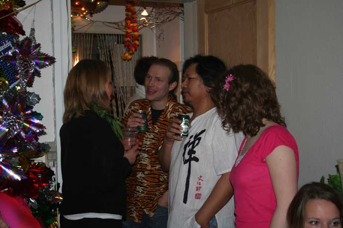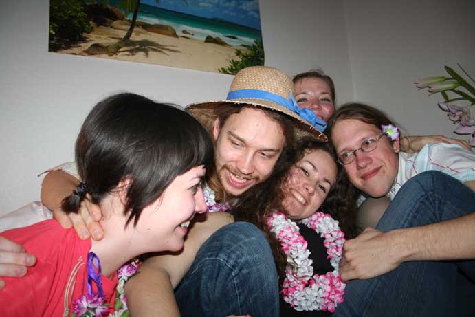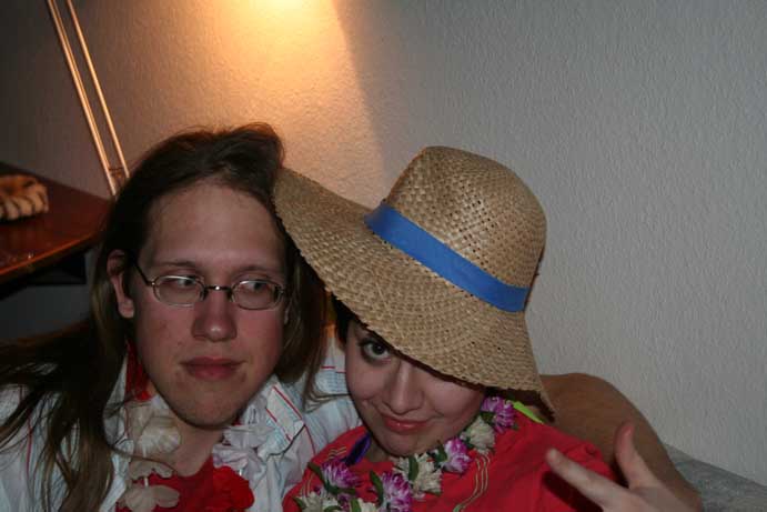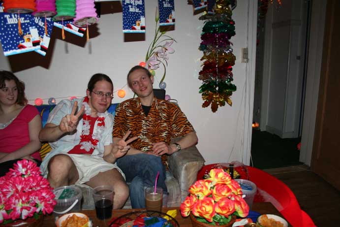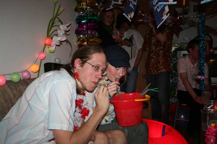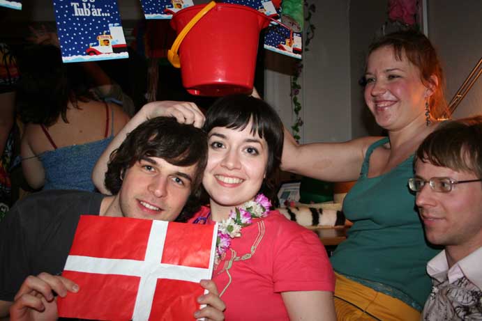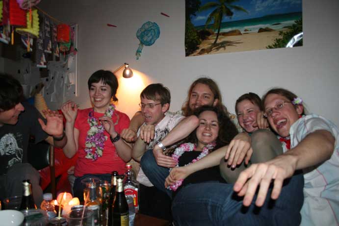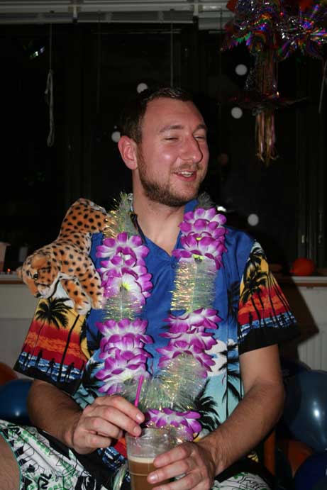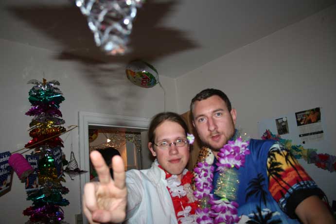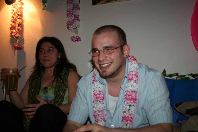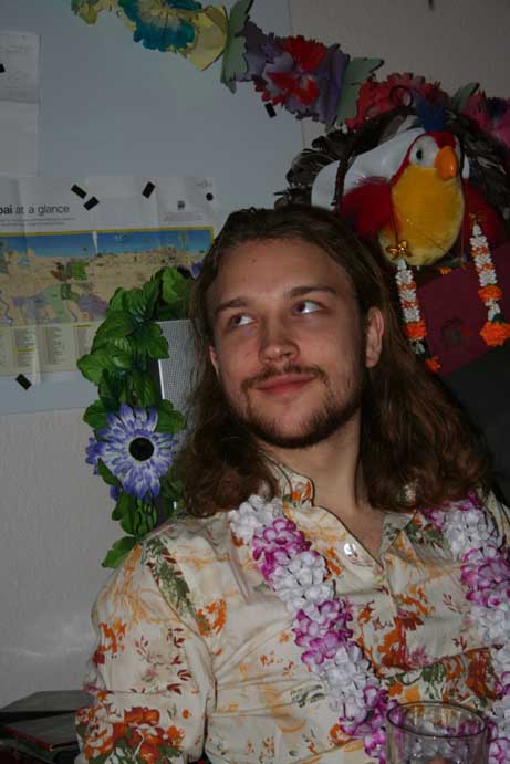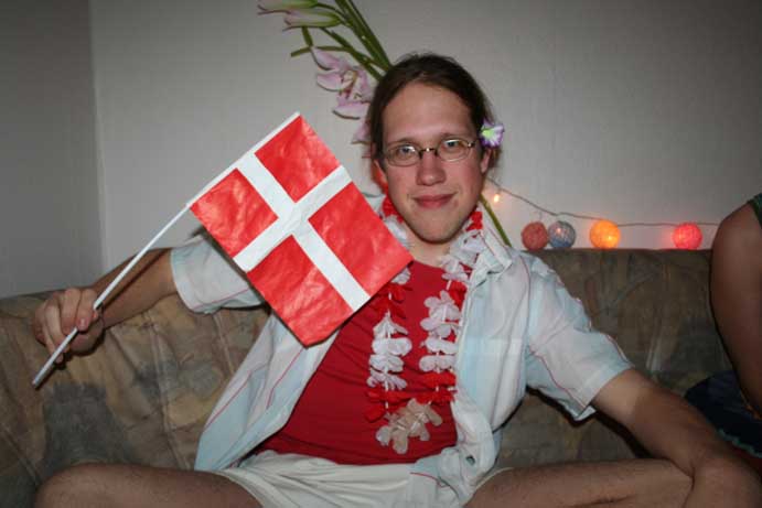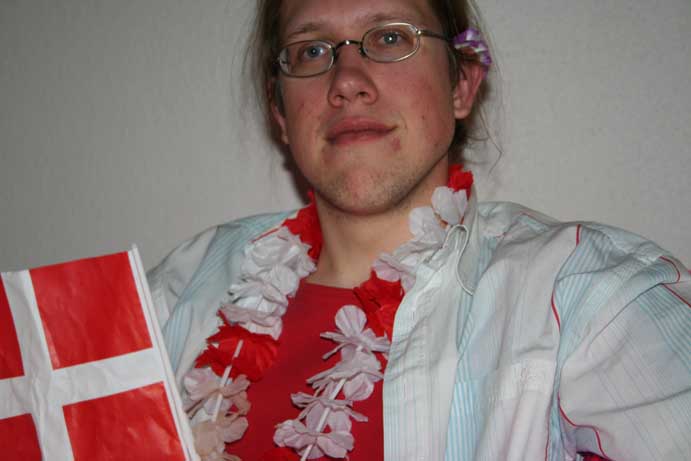 Saturday night Troels, my host in Copenhagen (Denmark), made a great Hawaii party at his place. There were so many people from different nations, it was absolutly great. Troels even had beach sand in his kitchen and lots of Hawaii gadgets! The party ended round about 6:00am and will be unforgettable ;-)