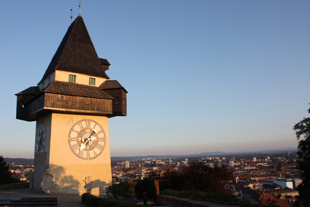 Nur wenige Stunden konnten wir in der steirischen Landeshauptstadt Graz verbringen. Wir nutzen die Zeit um uns Gebiet der Altstadt etwas zu erkunden und auch den Uhrturm bei Sonnenuntergang zu sehen.