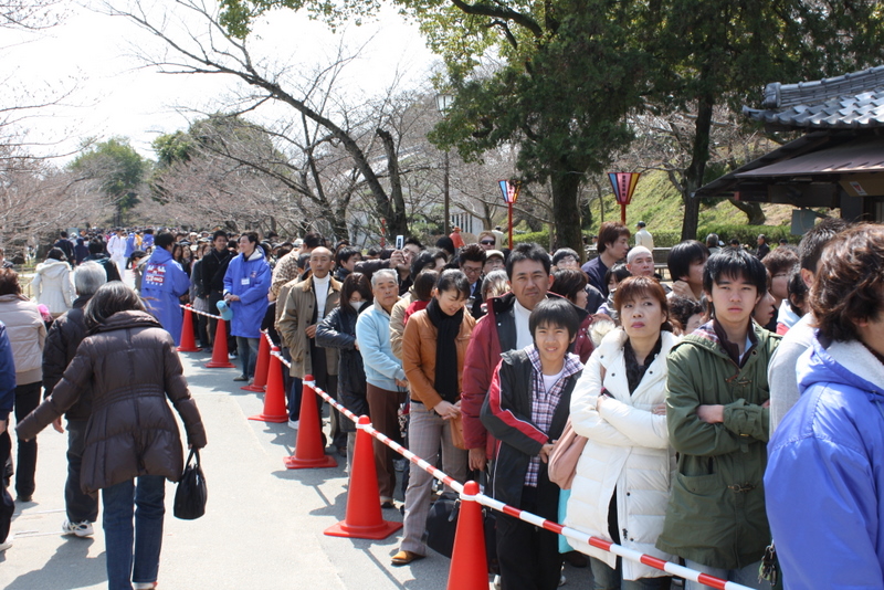 Himeji (姫路市) castle is a hilltop Japanese castle complex located in Himeji in Hyōgo Prefecture. It is regarded as the finest surviving example of 17th century Japanese castle architecture and it is simply amazing. Beeing there very early morning saves a lot of time, as many tourists arrive around noon and have to wait two hours to get up.