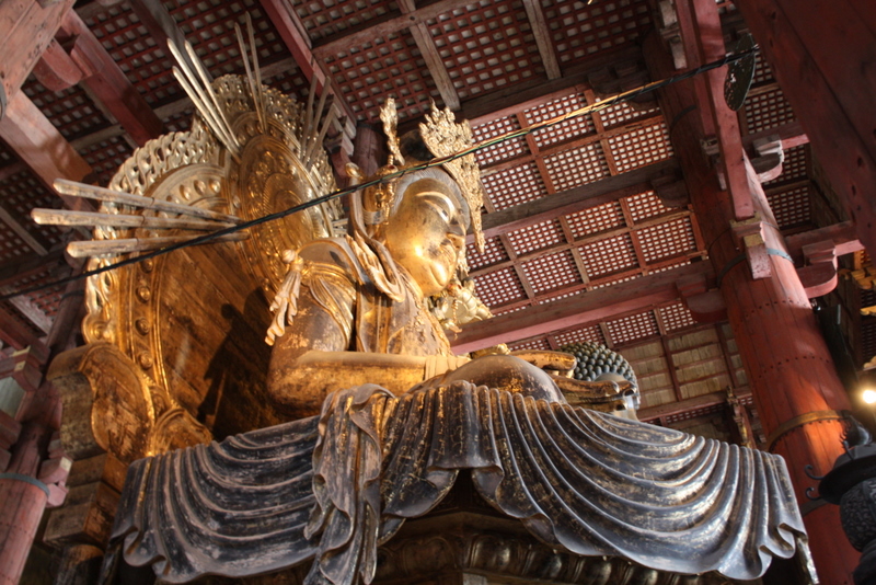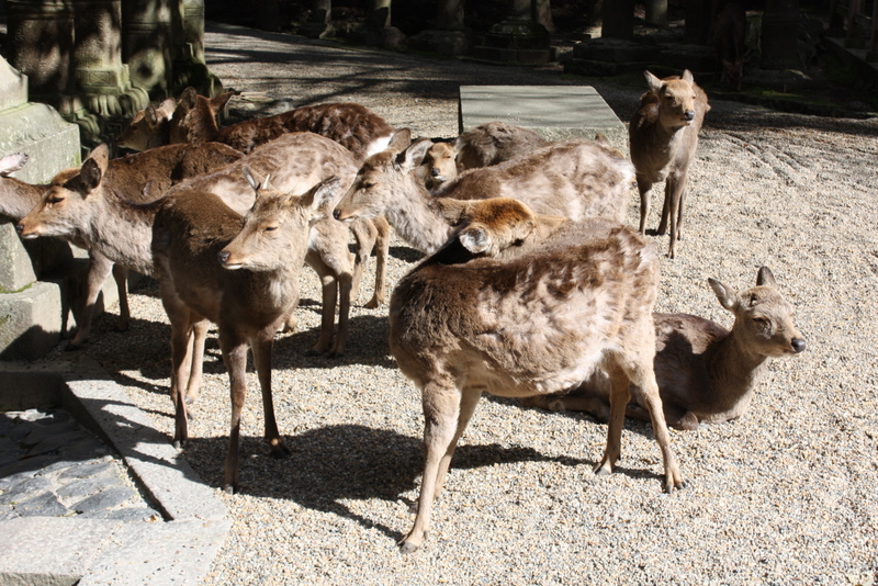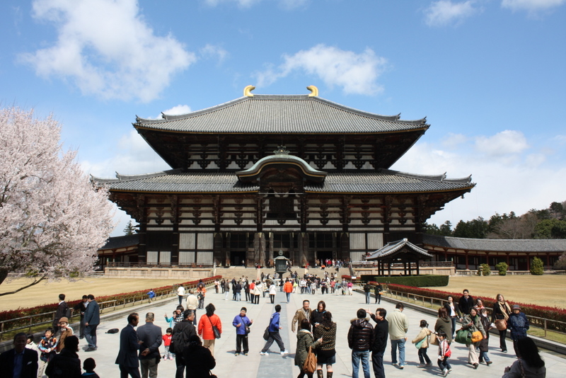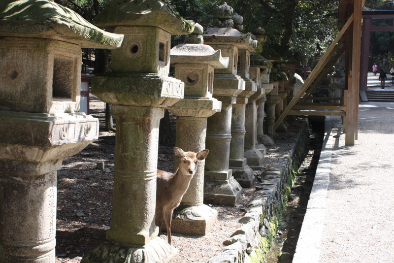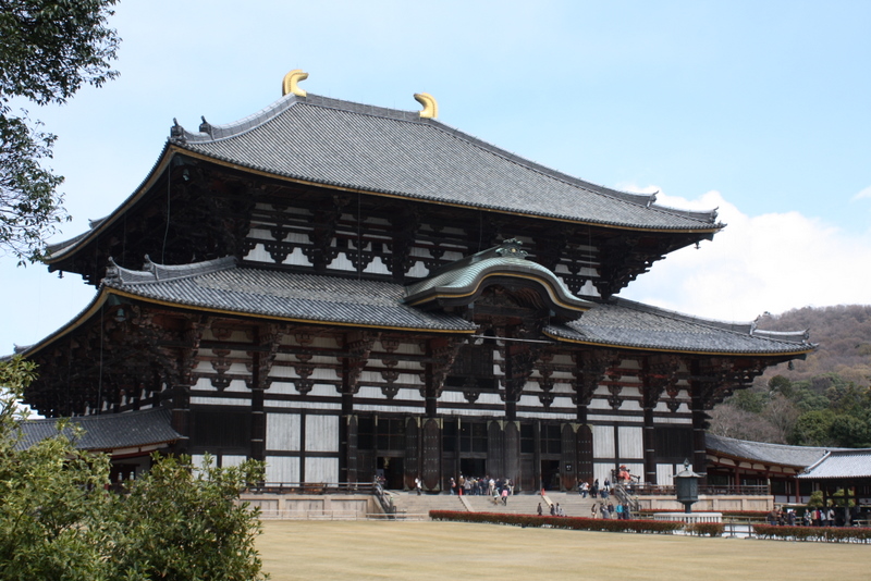 Nara (奈良市) is famous for it's old and well preserved temples. Many of them are even part of the UNESCO-world heritage program, named as "Historic Monuments of Ancient Nara". The Tōdai-ji is a Buddhist temple complex. Its Great Buddha Hall (大仏殿 Daibutsuden), the largest wooden building in the world! Nara is also famous for it's big amount of deers in the middle of the city!