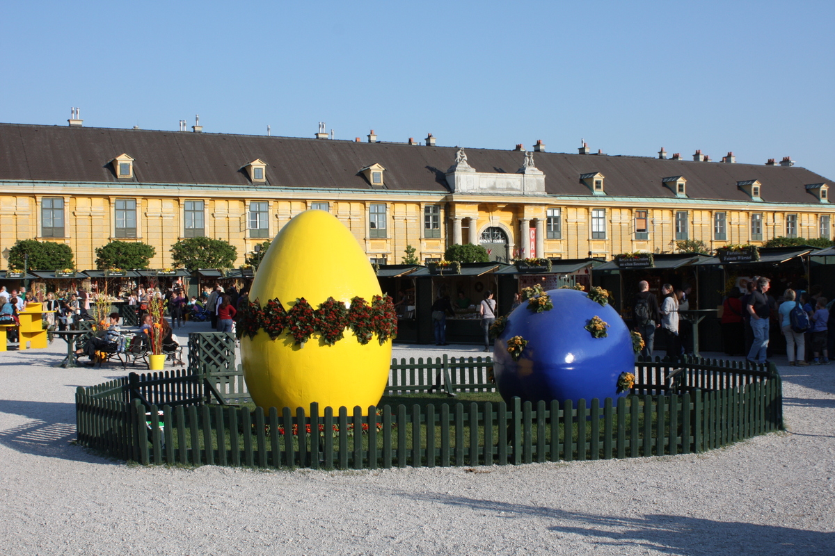 Im Frühling besuchten wir den Ostermarkt vor dem Schloß Schönbrunn. Die blühenden Bäumen luden außerdem zu einem Spaziergang im Park ein