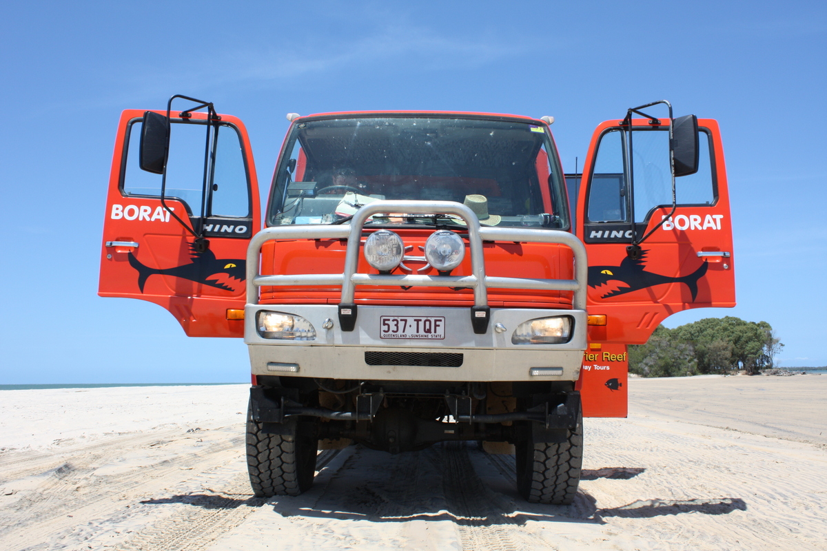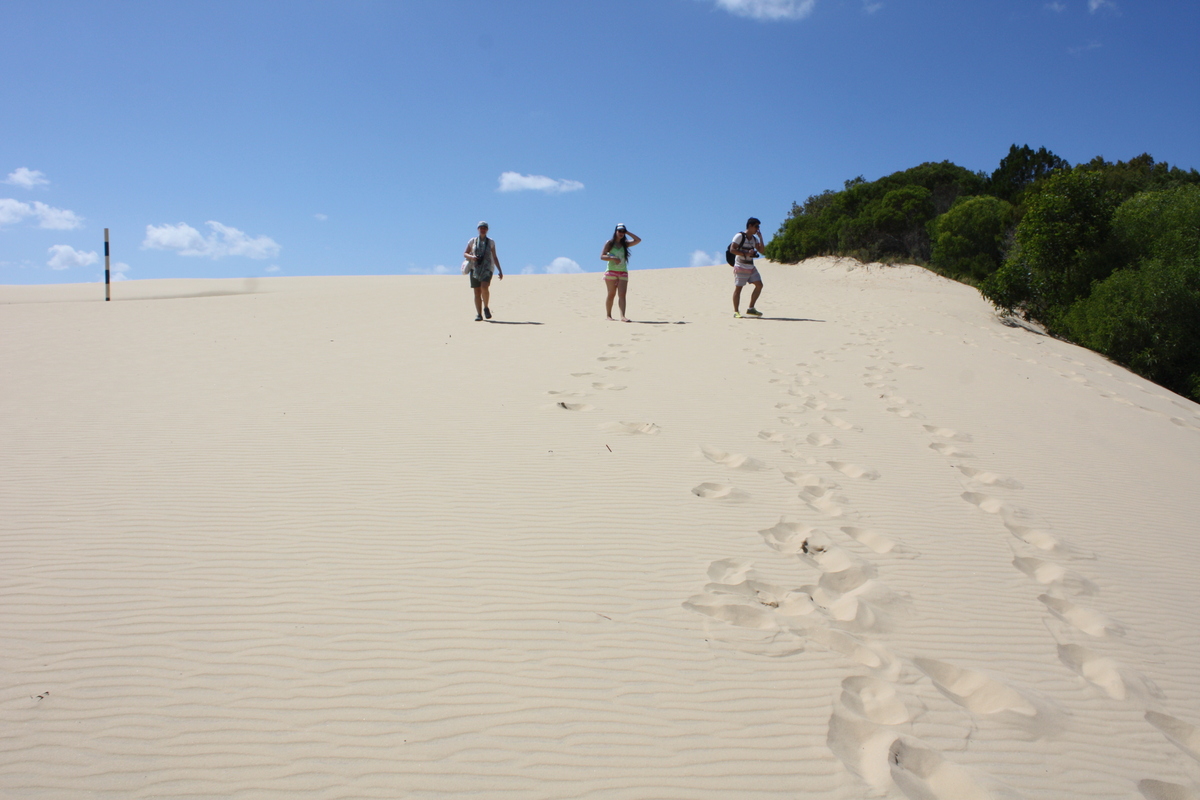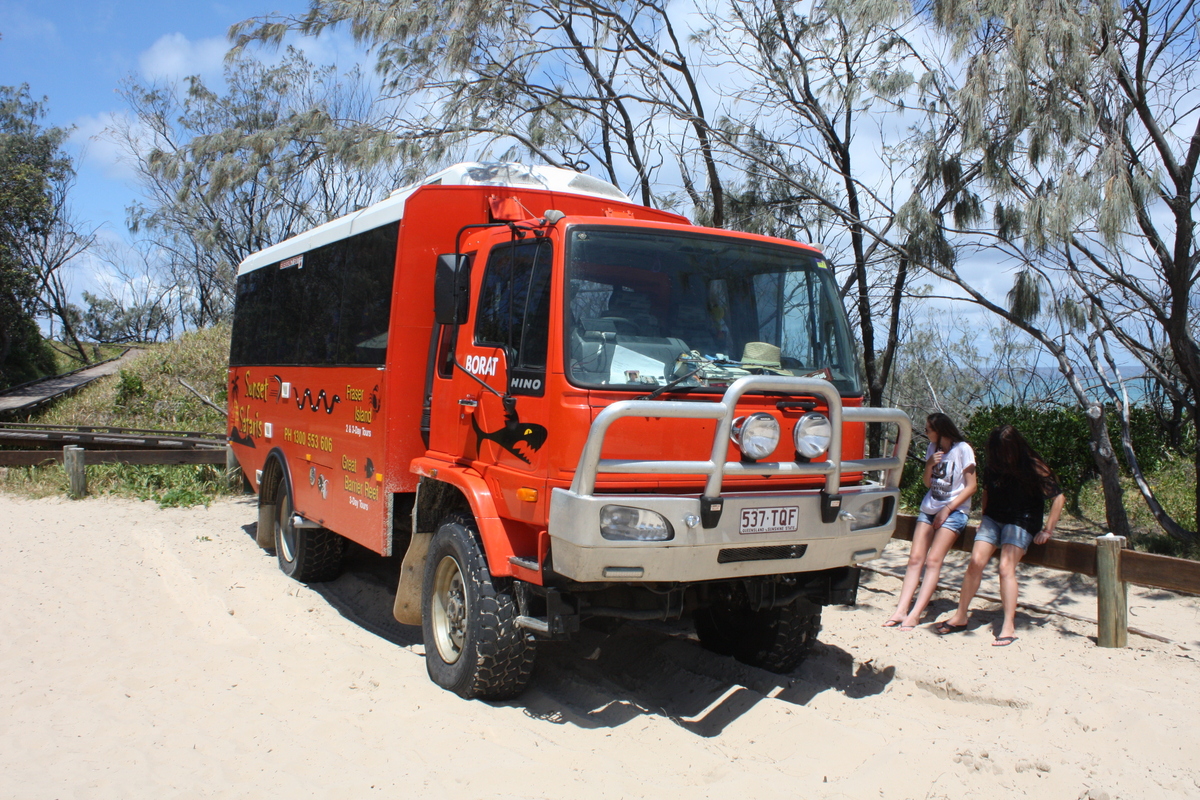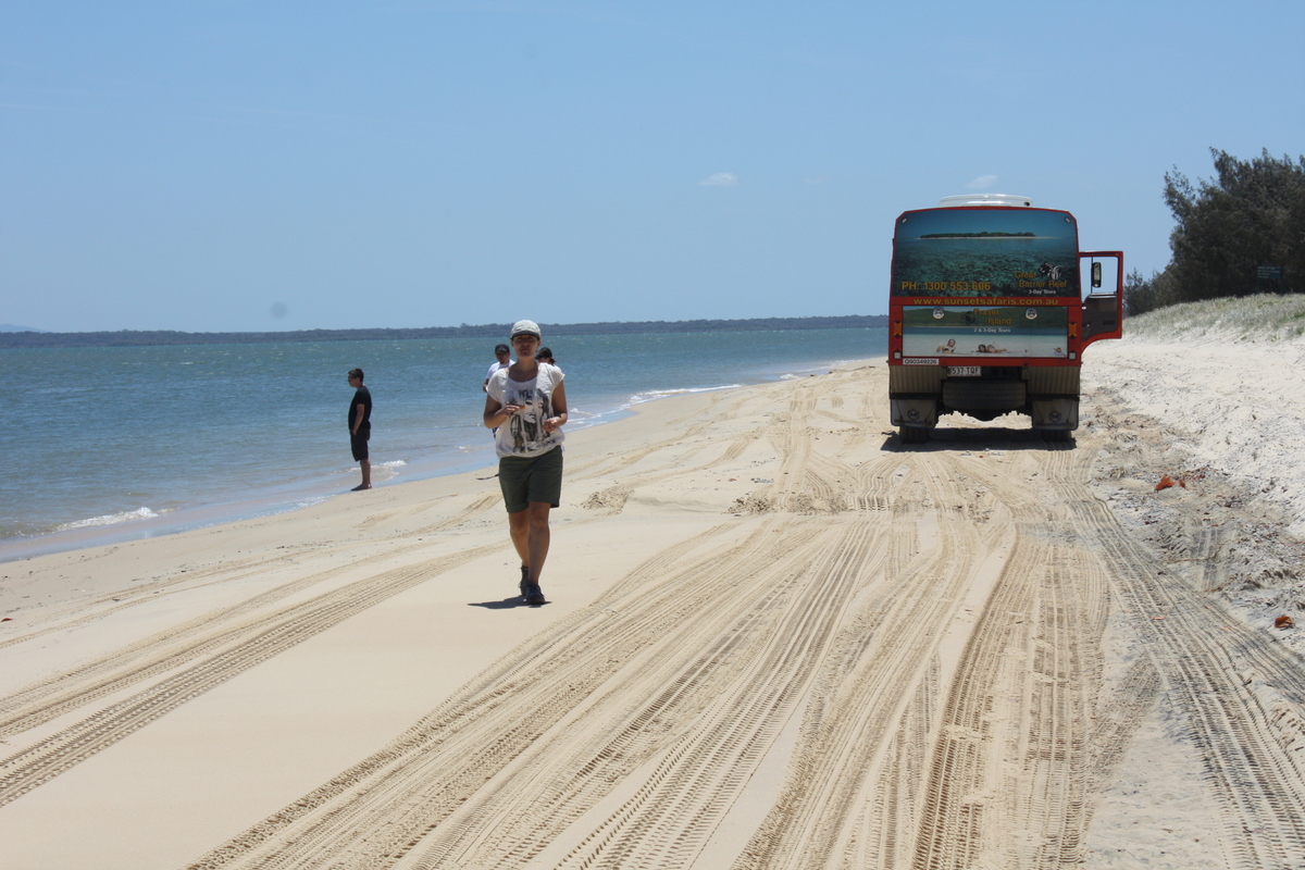 Fraser Island ist mit 1840 km² (etwa 4,5 mal größer als Wien) die größte Sandinsel der Welt. Erreichbar ist sie nur per Fähre und einem geländegängigen Fahrzeug oder aus der Luft mit einem Kleinflugzeug. Einzigartig ist die Insel wegen des Vorhandenseins von Vegetation, denn auf Sand wachsen bekanntlich keine Pflanzen. Auf der Insel findet man neben wilden Dingos auch 19 Schlangen- und 350 Volgelarten. Im Meer kann man Mantarochen, Haie und Schildkröten bei ihrem Treiben beobachten.