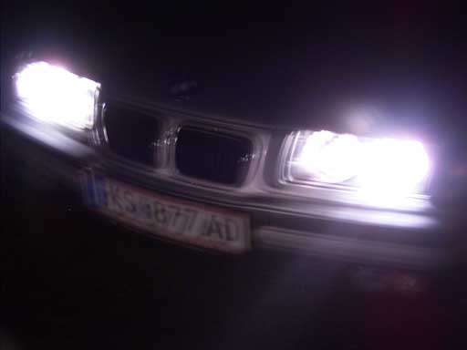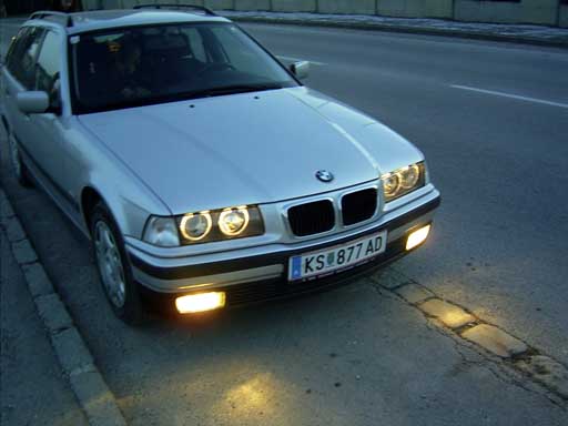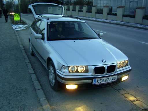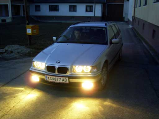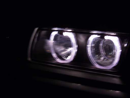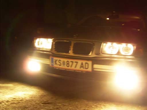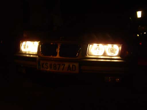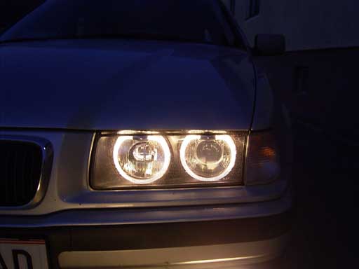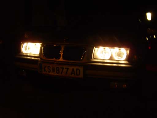 Wie berichtet habe ich mir auf der Autmobilmesse sogenannte "Angel Eyes"-Lichter für mein Auto gekauft. Am Donnerstag den 22. Jänner 2004 wurden diese im Zuge einer Motor&Getriebepflege anmontiert. Erste Reaktionen fielen zu meiner Zufriedenheit aus :) [Aktualisiert und erweitert 25. Jänner 2004]