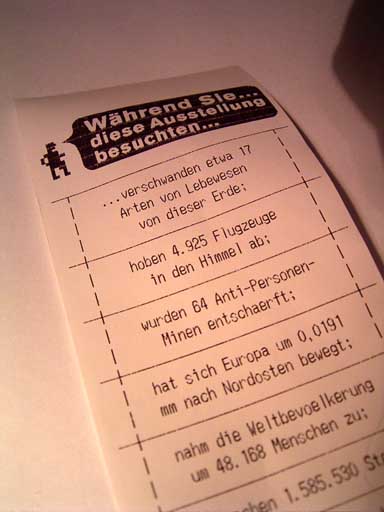 Am 14. September 2003 besuchte ich die ARS Electronica in Linz. Die ARS-Electronica ist eine Art "interaktive Kunstausstellung". Ich bin eher nicht überzeugter Anhänger modernen Kunst da sie meist keine kunst ist, aber diese Ausstellung hat dank interaktiver Eingriffsmöglichkeit ganz andere Perpektiven eröffnet!