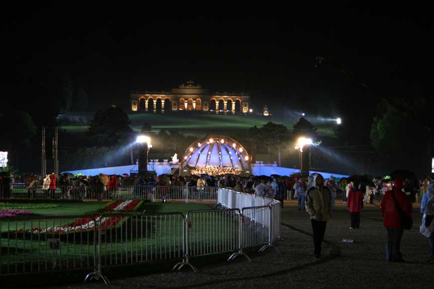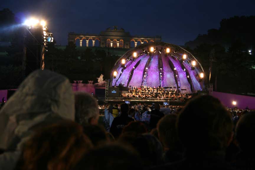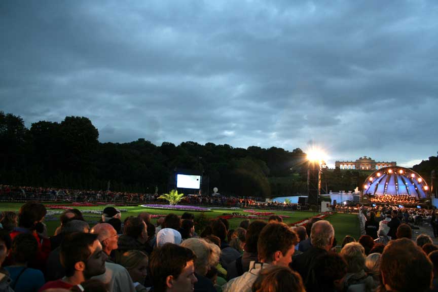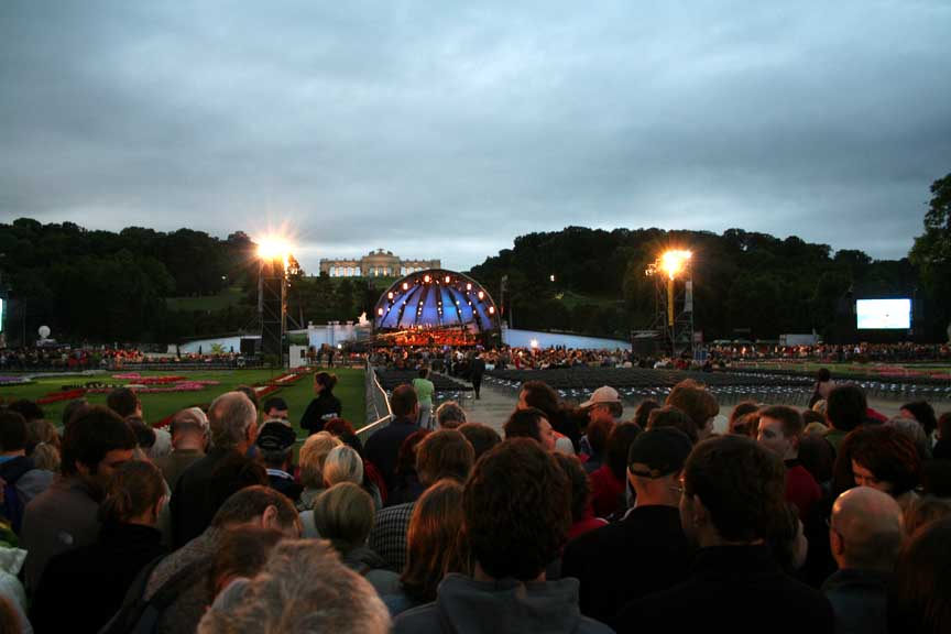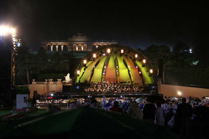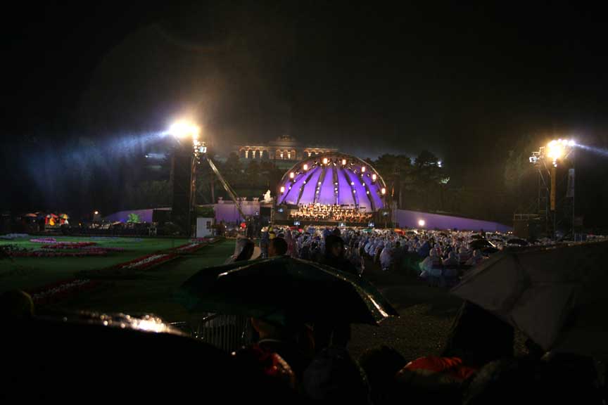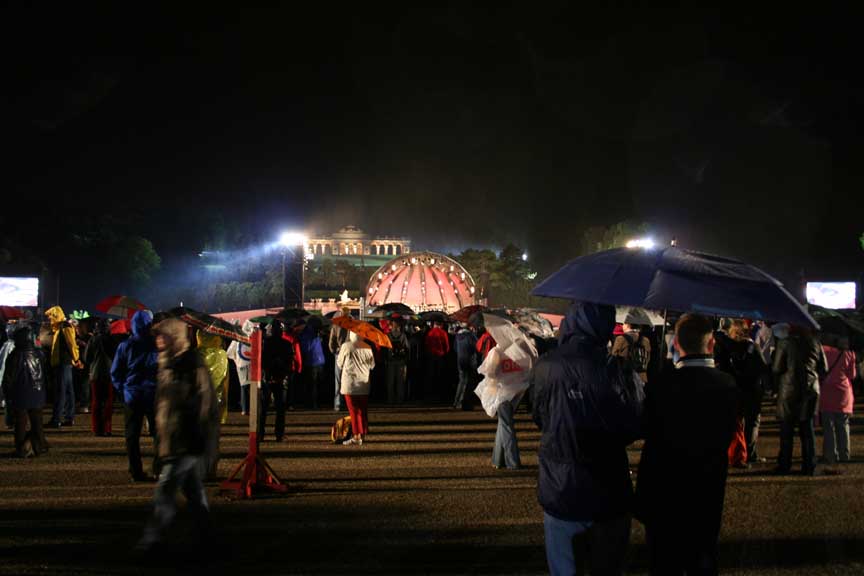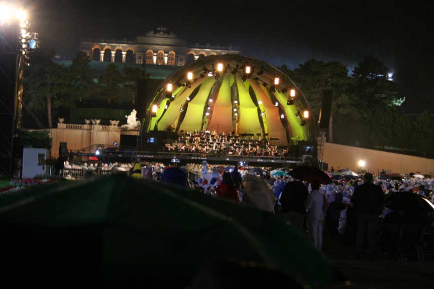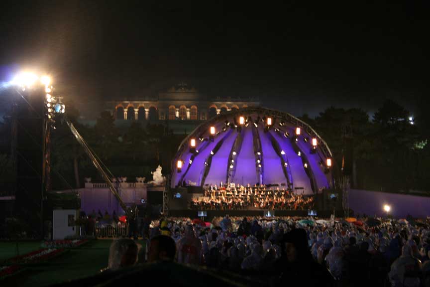Am 30. Juni 2006, bereits wegen Unwetters auf diesen Termin verschoben war leider wieder verregnet - Zwar nicht mehr so stark wie beim ursprünglichen Termin, aber dennoch - Das Konzert war dennoch gut - Es spielten die Wiener Philharmoniker mit Plácido Domingo & Juan Diego Flórez.