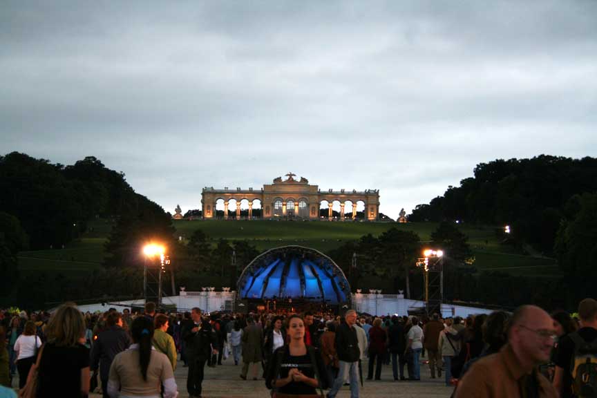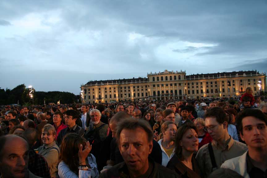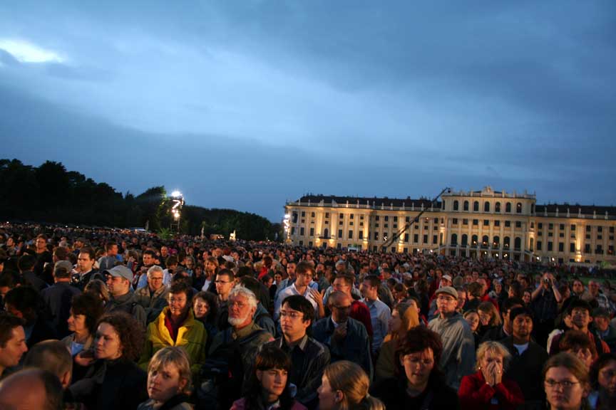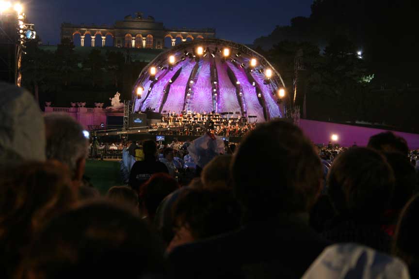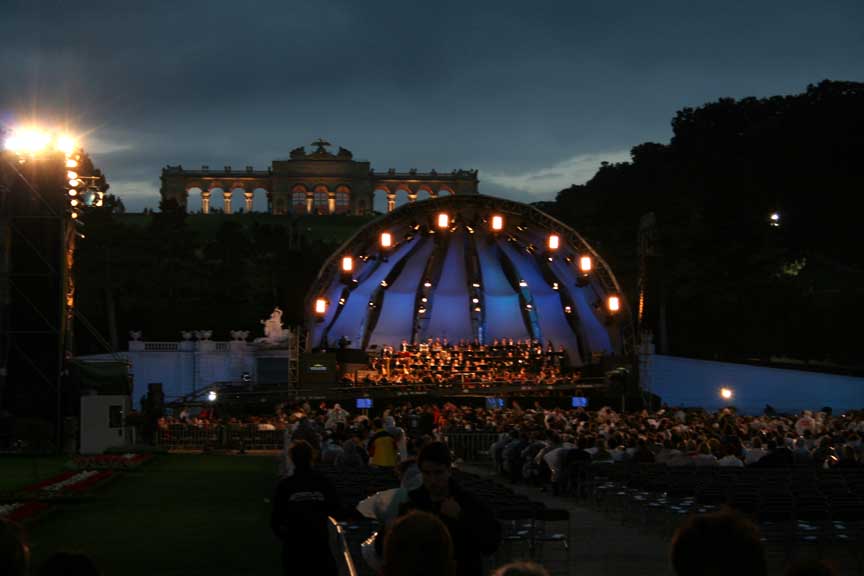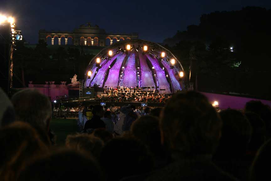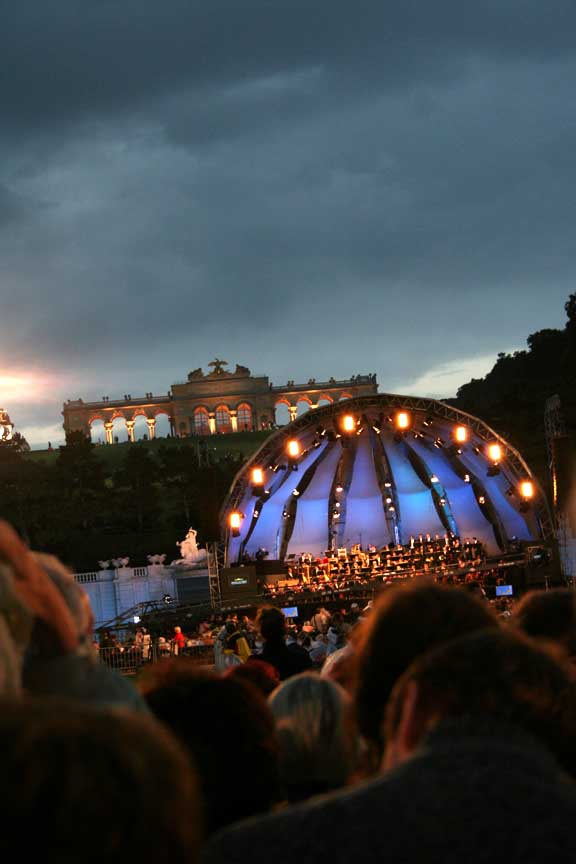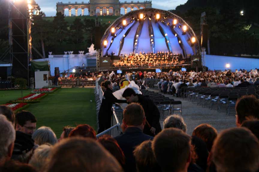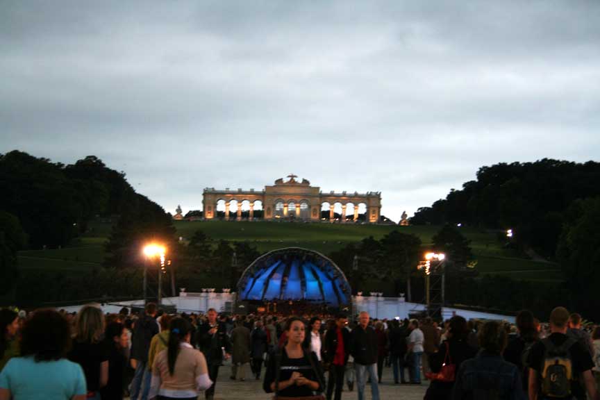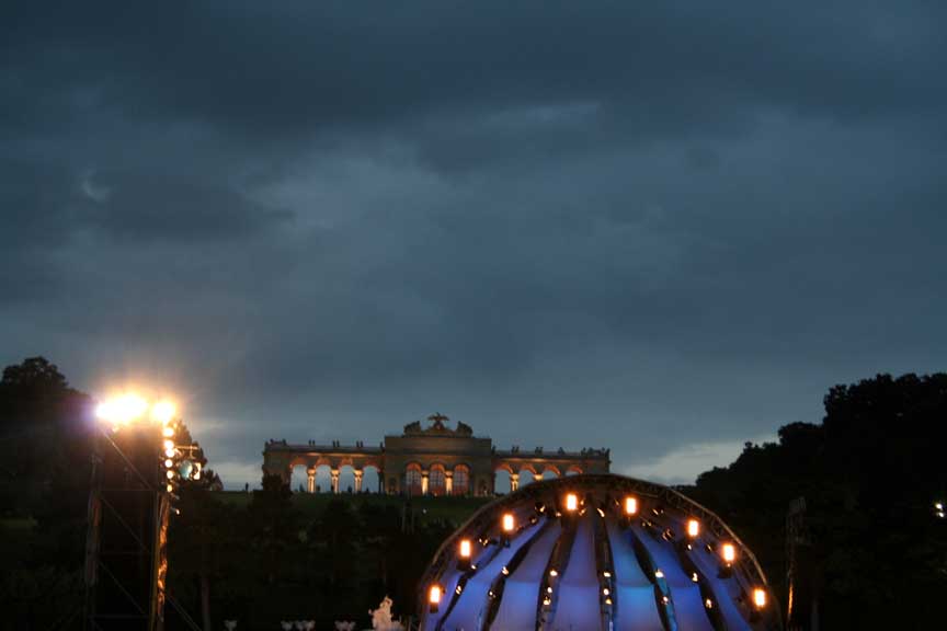 Am 30. Juni 2006, bereits wegen Unwetters auf diesen Termin verschoben war leider wieder verregnet - Zwar nicht mehr so stark wie beim ursprünglichen Termin, aber dennoch - Das Konzert war dennoch gut - Es spielten die Wiener Philharmoniker mit Plácido Domingo & Juan Diego Flórez.