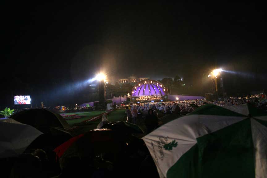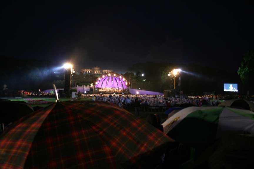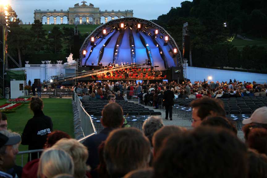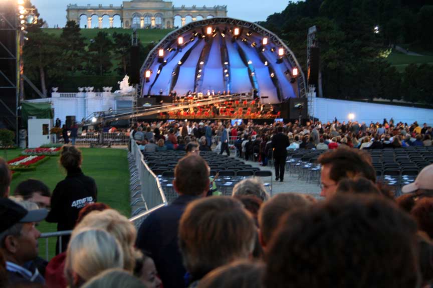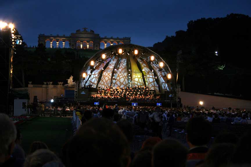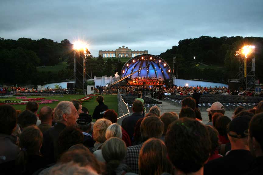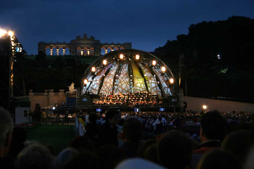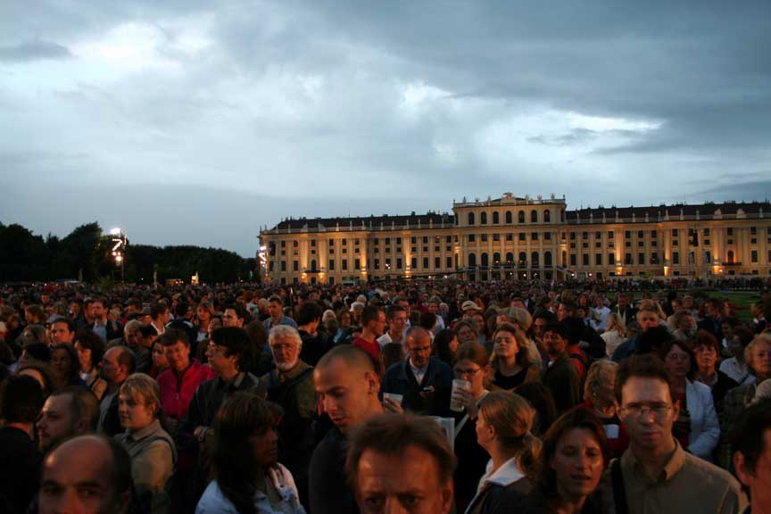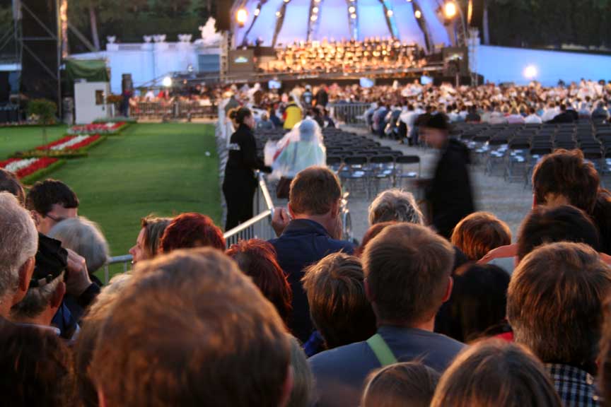 Am 30. Juni 2006, bereits wegen Unwetters auf diesen Termin verschoben war leider wieder verregnet - Zwar nicht mehr so stark wie beim ursprünglichen Termin, aber dennoch - Das Konzert war dennoch gut - Es spielten die Wiener Philharmoniker mit Plácido Domingo & Juan Diego Flórez.