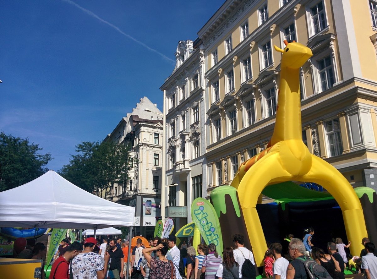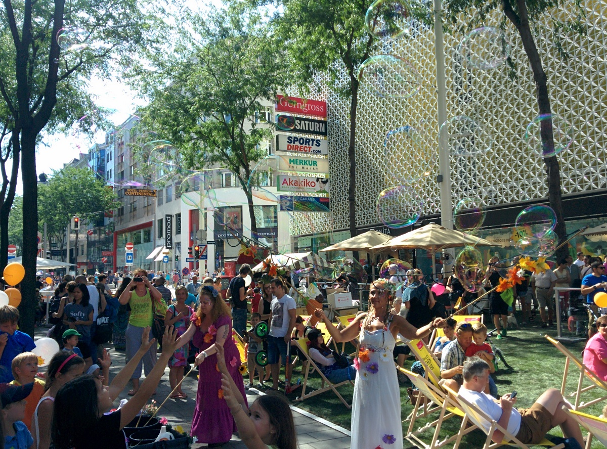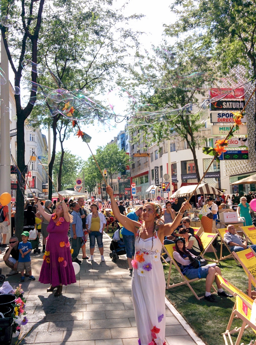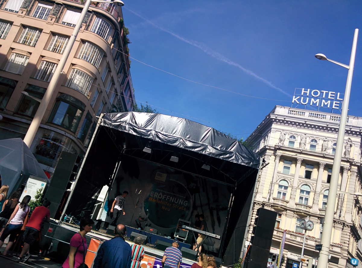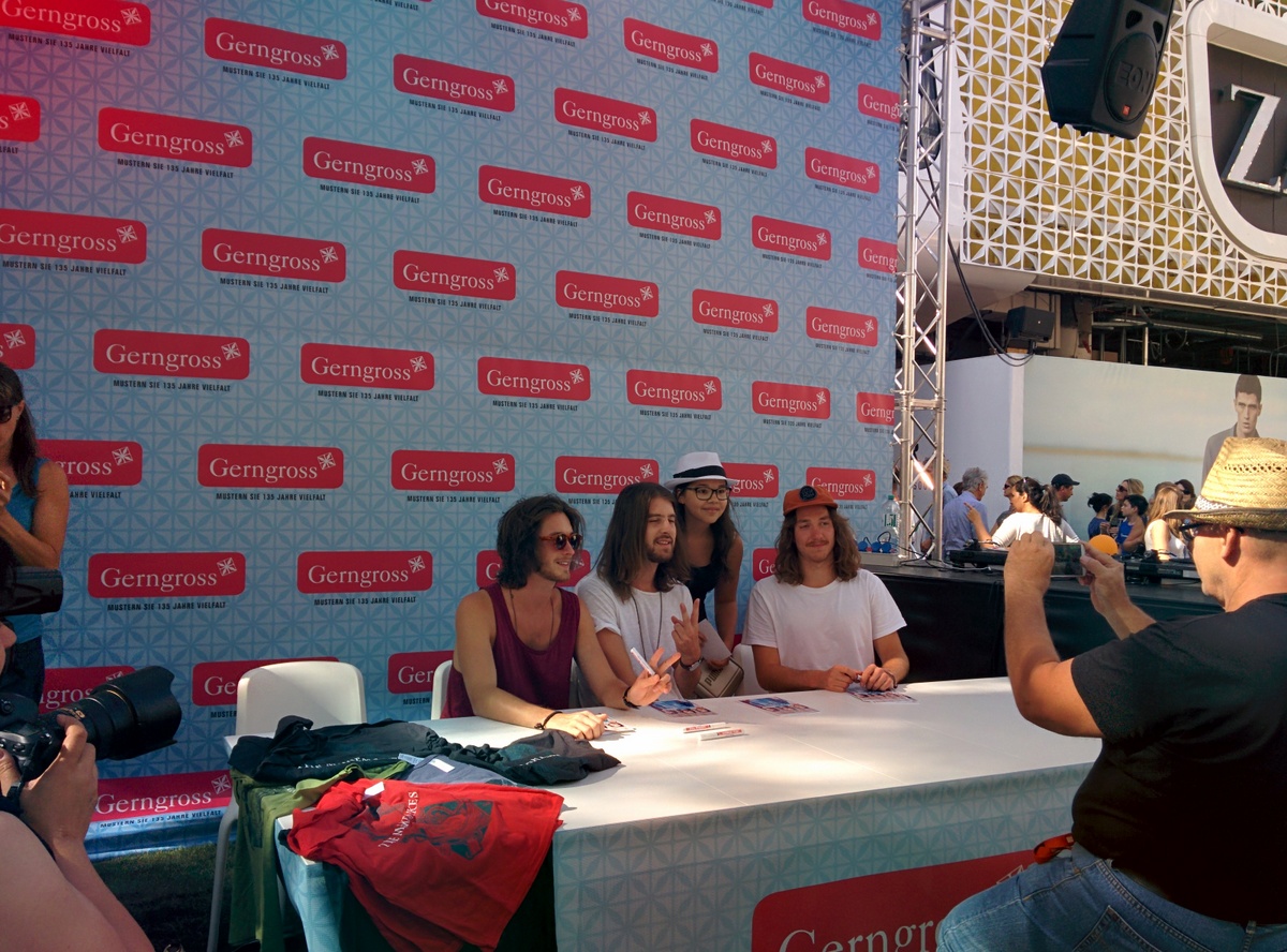 Auf der Eröffnungsfeier der Mariahilferstraße Neu am ersten August 2015. Viele Veranstaltungen und Musik begleiteten das Fest. Unter anderem traten auch die Makemakes auf und gaben Autogramme.