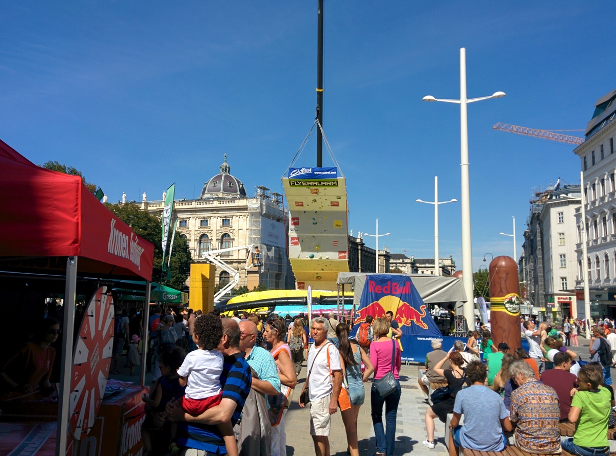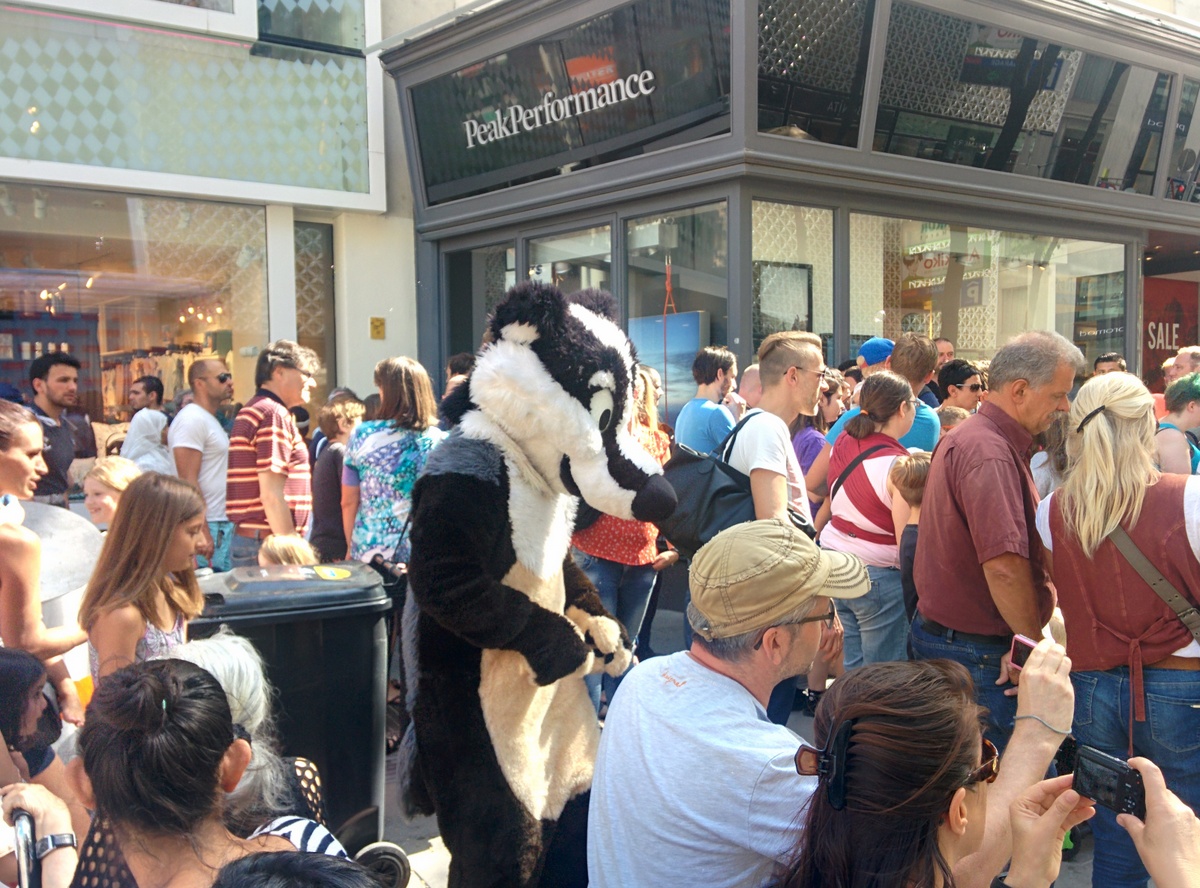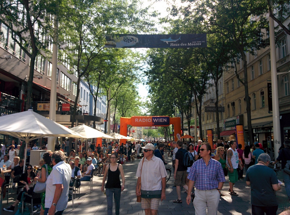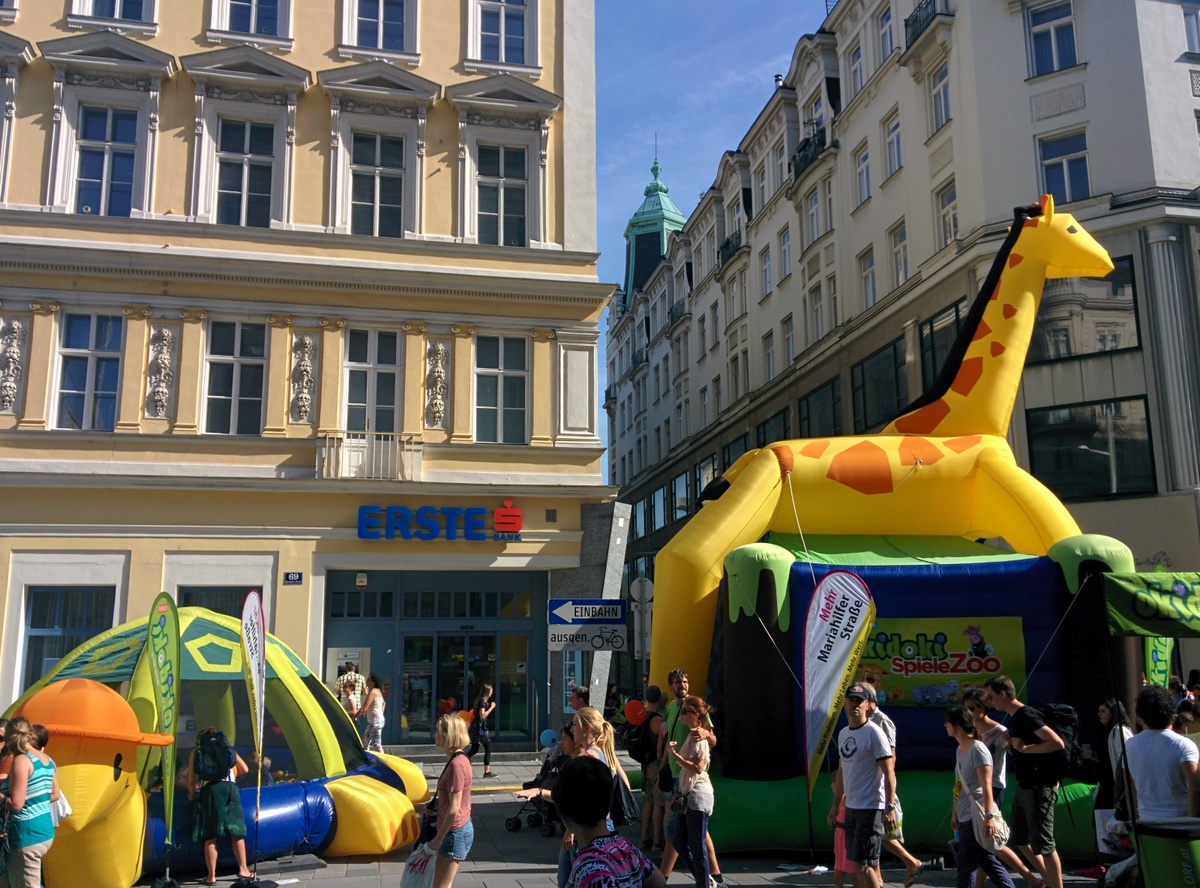 Auf der Eröffnungsfeier der Mariahilferstraße Neu am ersten August 2015. Viele Veranstaltungen und Musik begleiteten das Fest. Unter anderem traten auch die Makemakes auf und gaben Autogramme.