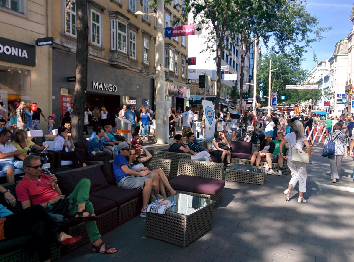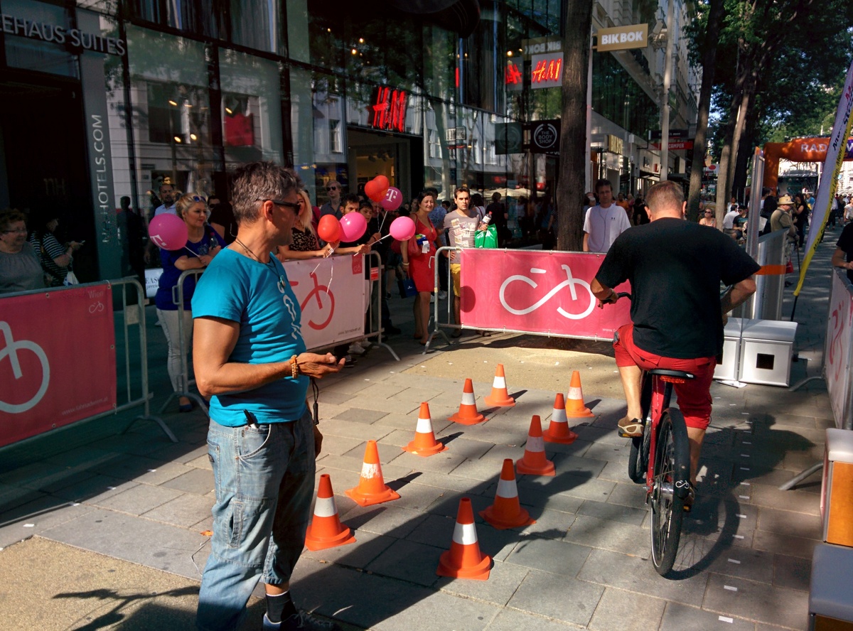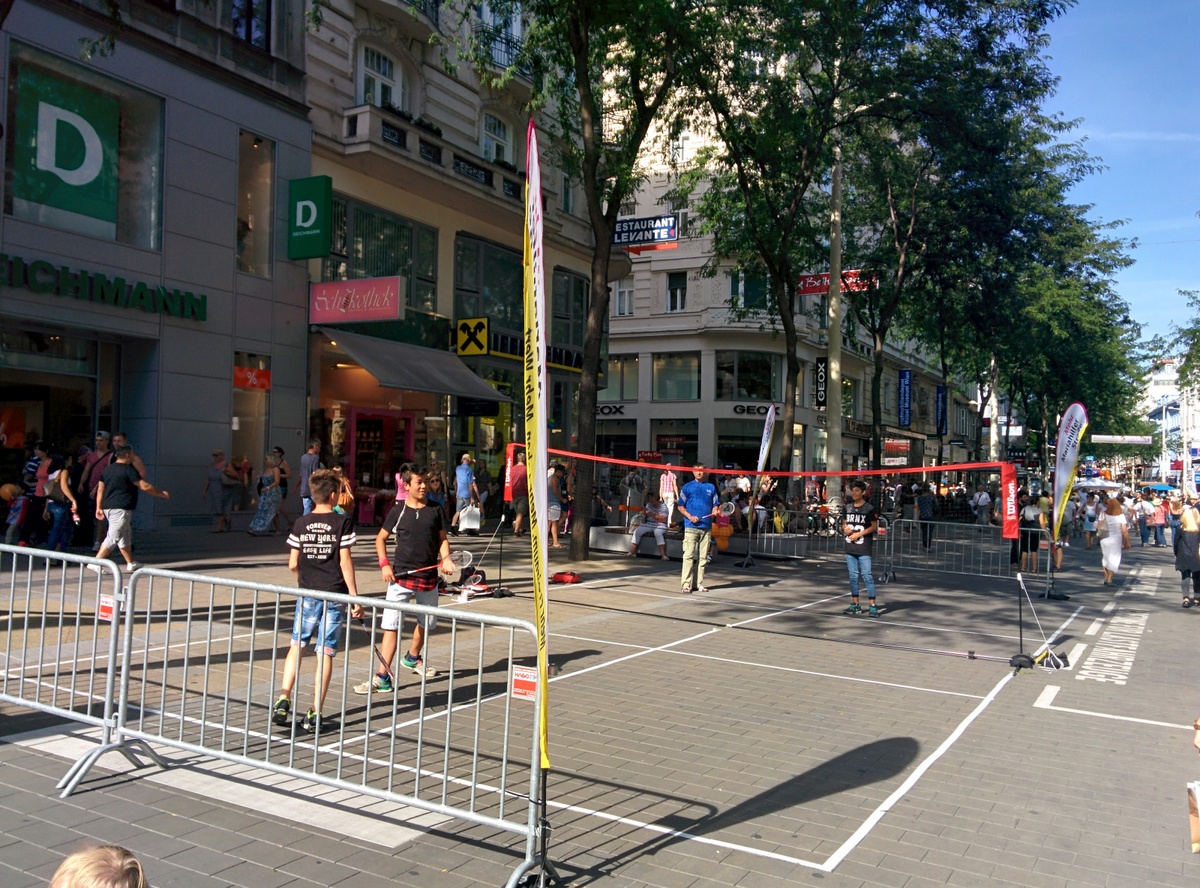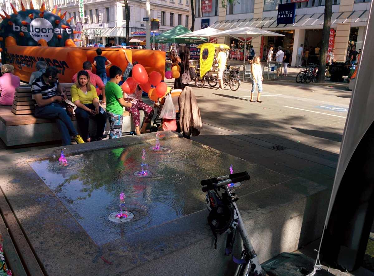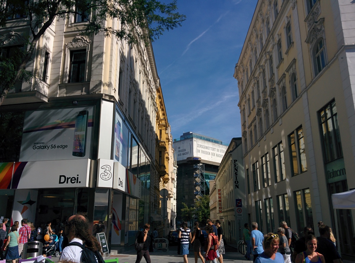 Auf der Eröffnungsfeier der Mariahilferstraße Neu am ersten August 2015. Viele Veranstaltungen und Musik begleiteten das Fest. Unter anderem traten auch die Makemakes auf und gaben Autogramme.