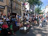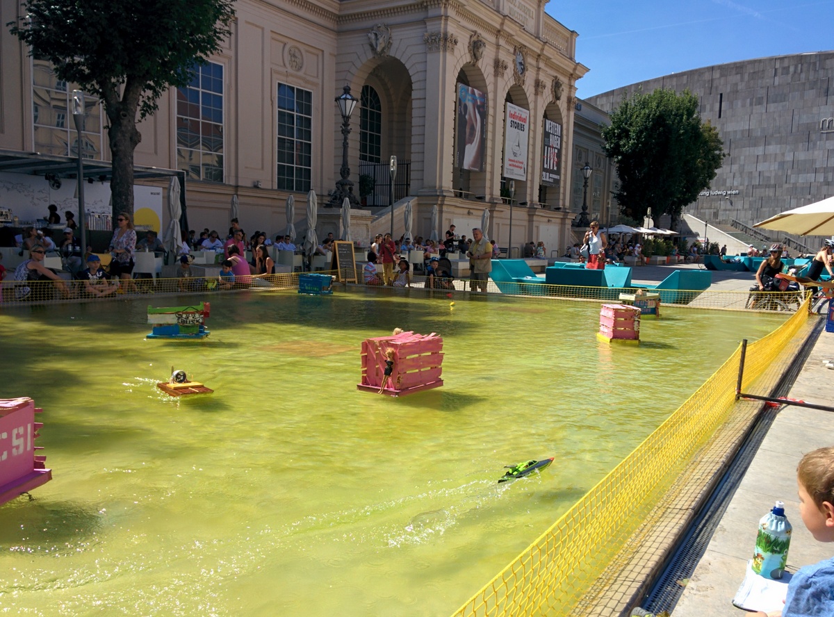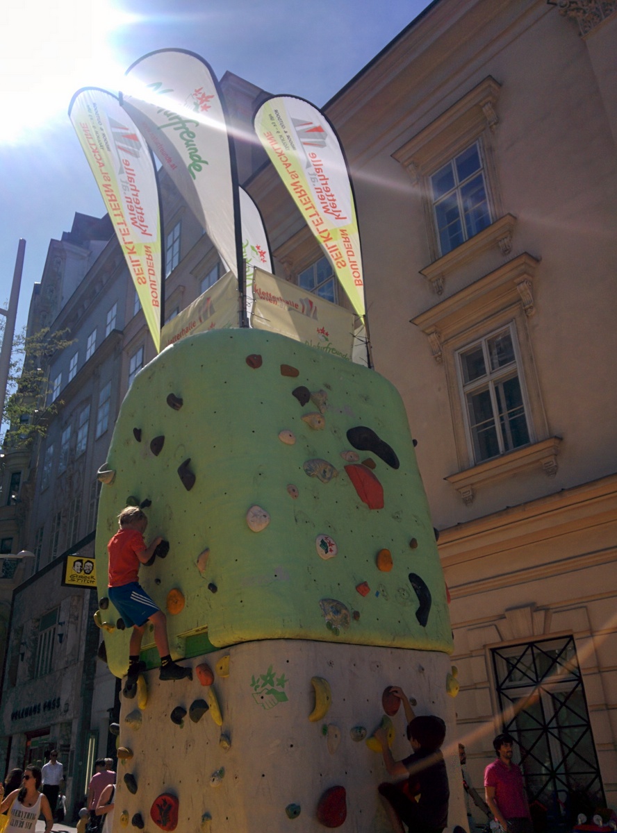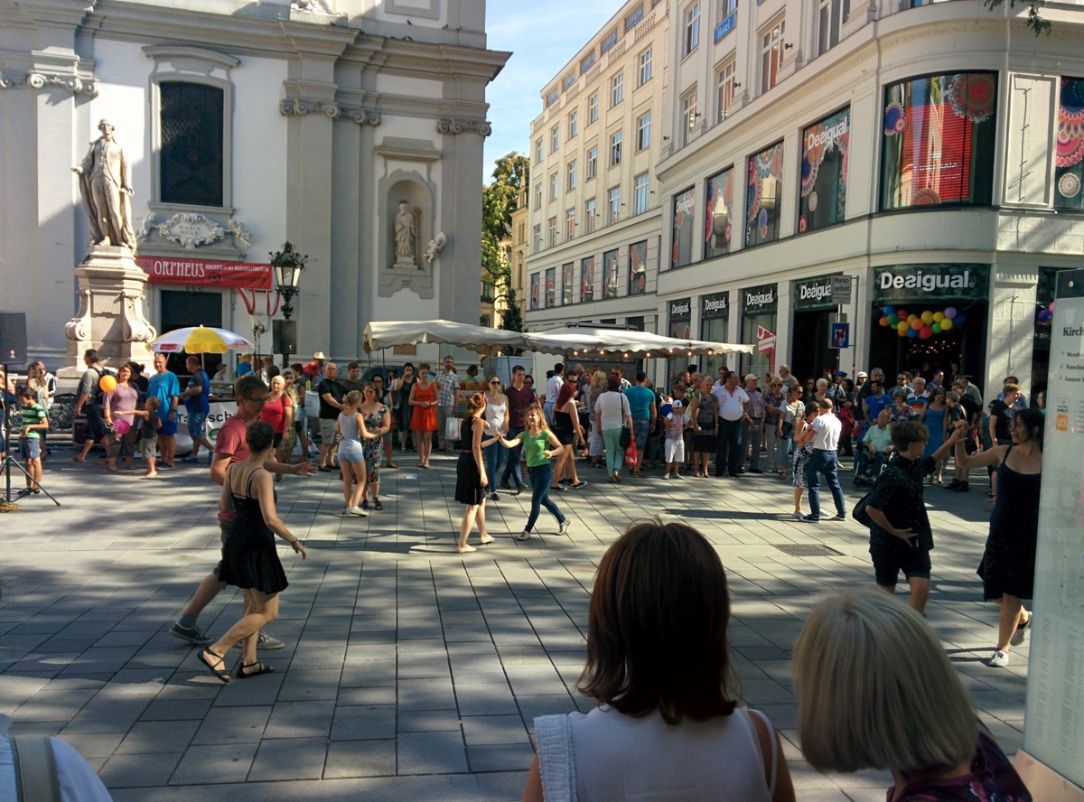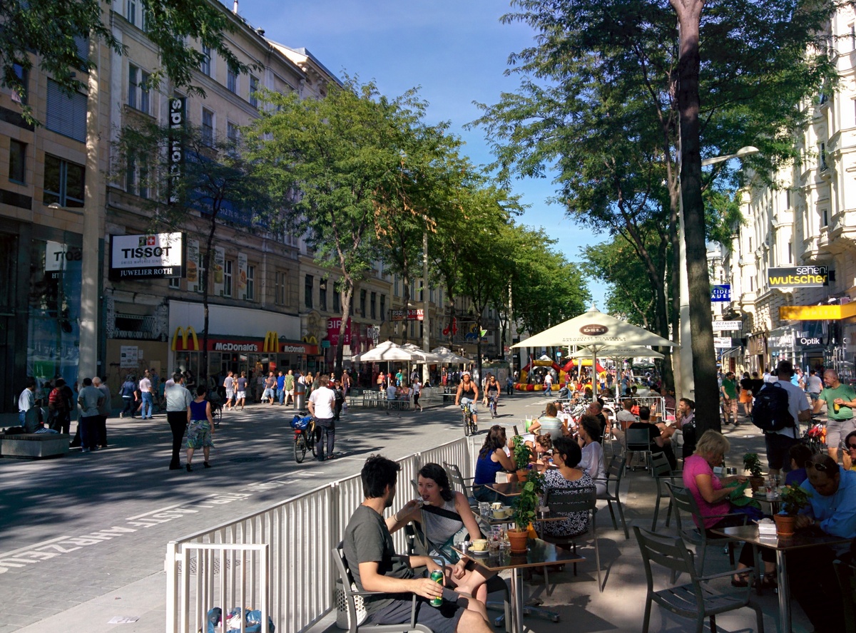 Auf der Eröffnungsfeier der Mariahilferstraße Neu am ersten August 2015. Viele Veranstaltungen und Musik begleiteten das Fest. Unter anderem traten auch die Makemakes auf und gaben Autogramme.