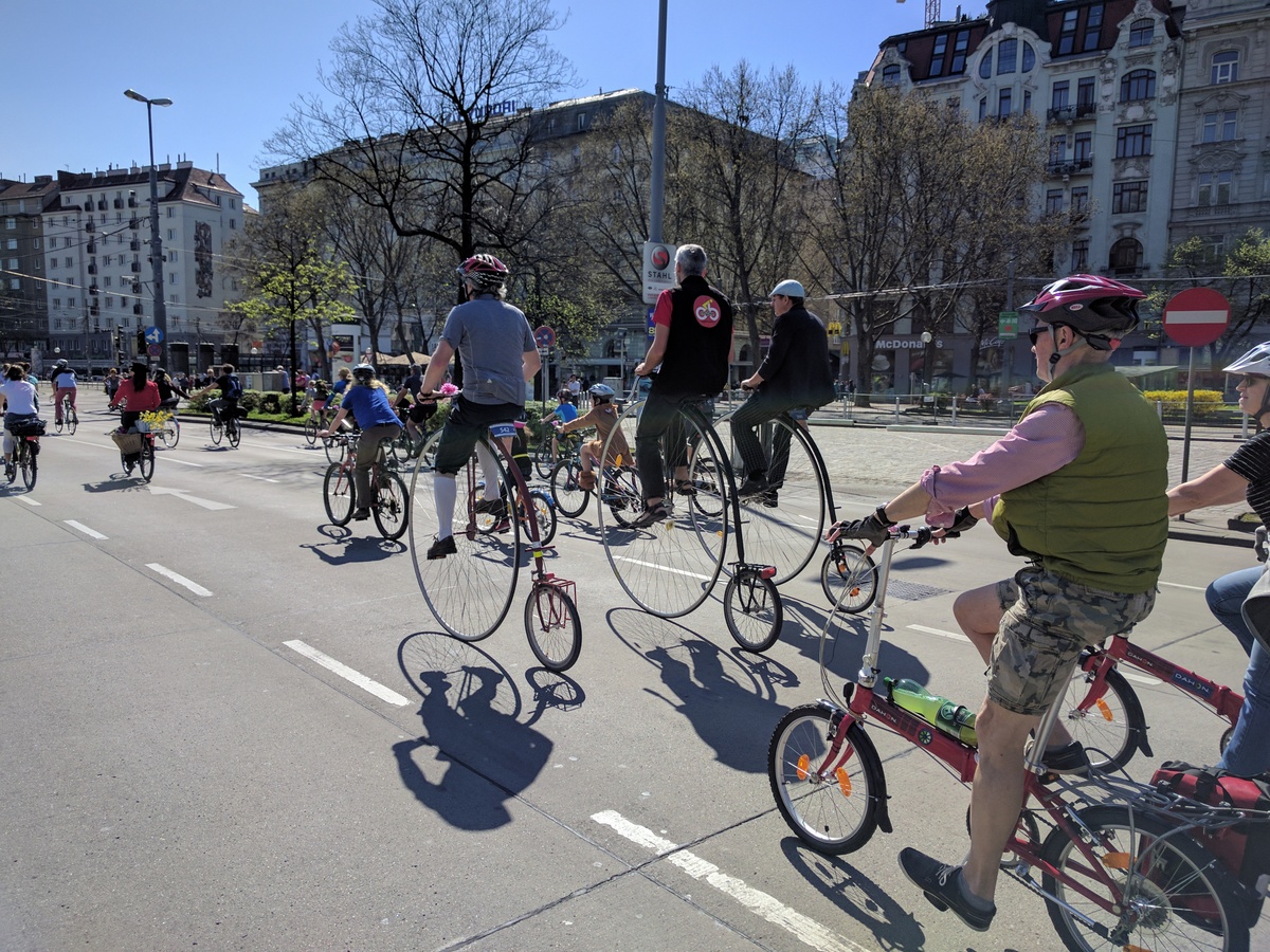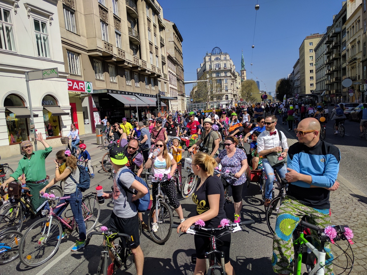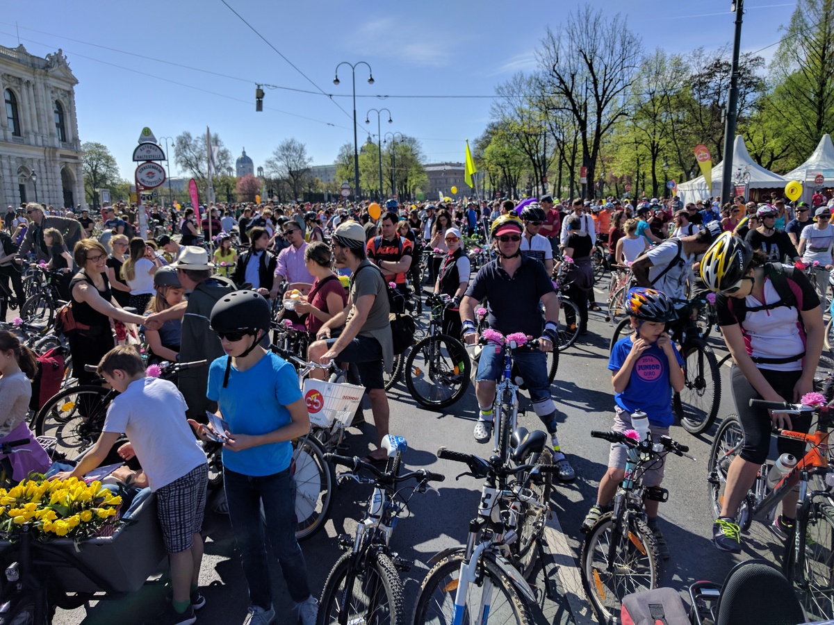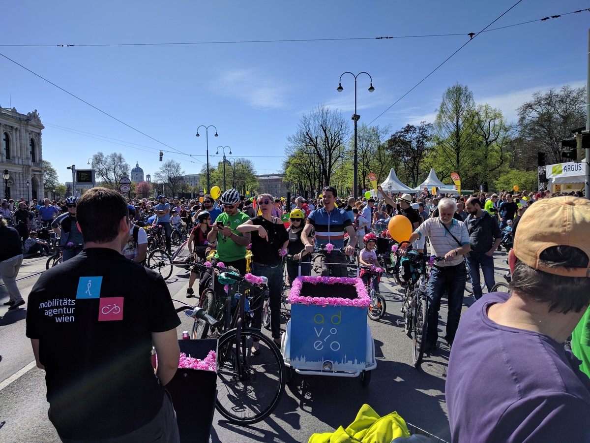 Anfang April jährte sich die siebente RADpaRADe. Ich war dieses Jahr auch wieder dabei zusammen mit sovielen Radfahrern wie noch nie zu vor. Perfektes Wetter und gute Stimmung sorgten für eine gemütliche Runde um den Ring und zum Praterstern