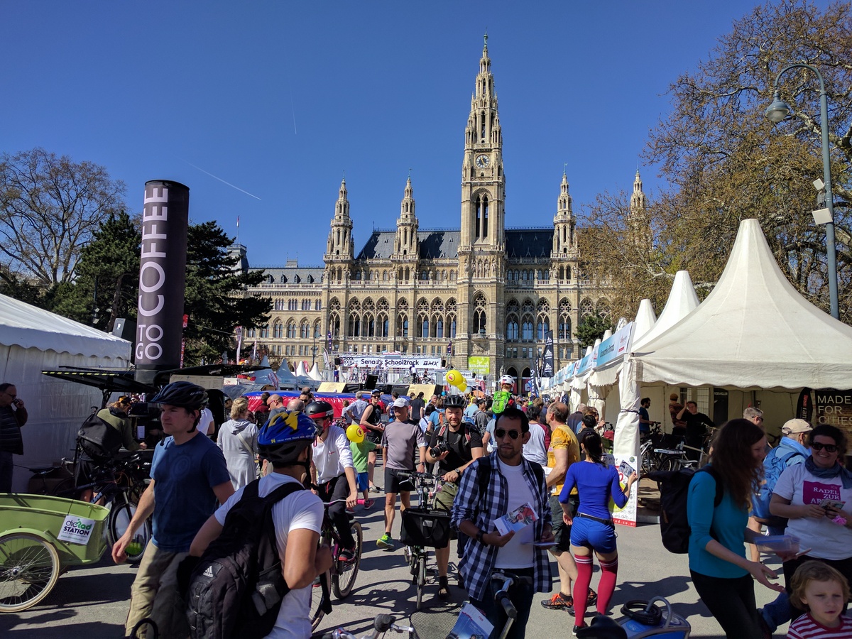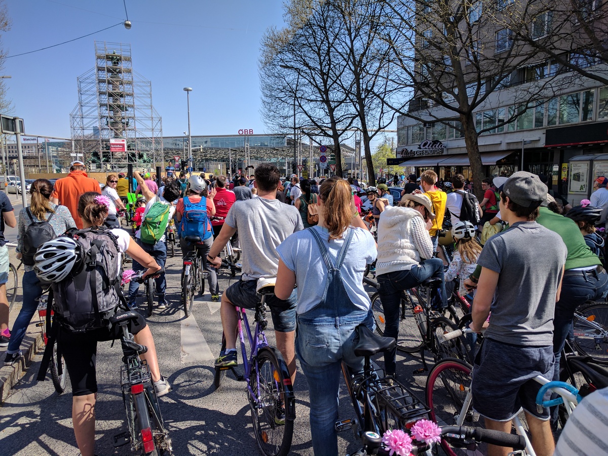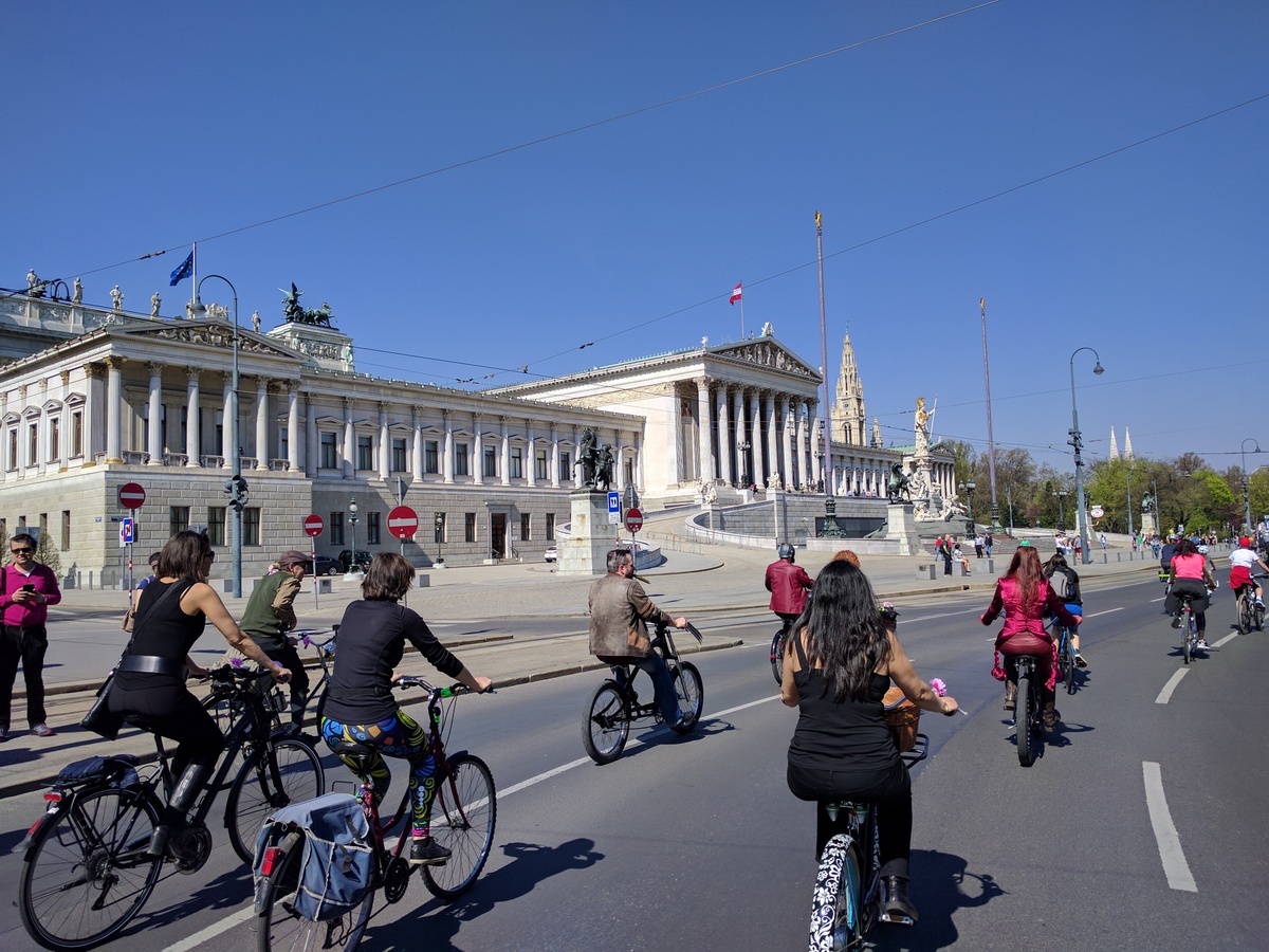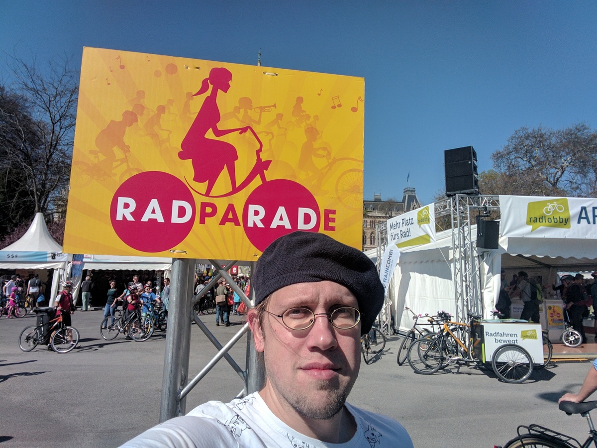 Anfang April jährte sich die siebente RADpaRADe. Ich war dieses Jahr auch wieder dabei zusammen mit sovielen Radfahrern wie noch nie zu vor. Perfektes Wetter und gute Stimmung sorgten für eine gemütliche Runde um den Ring und zum Praterstern