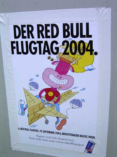 Am 19.09.2004 fand in der Brigittenauerbucht in Wien auf der Donauinsel der sechste RedBull Flugtag, war mit Berd C dort. Waren viele kreative Flugobjekte dabei, unter anderen: Raumschiff Enterprise, fliegendes Wiener Schnitzel und und und...