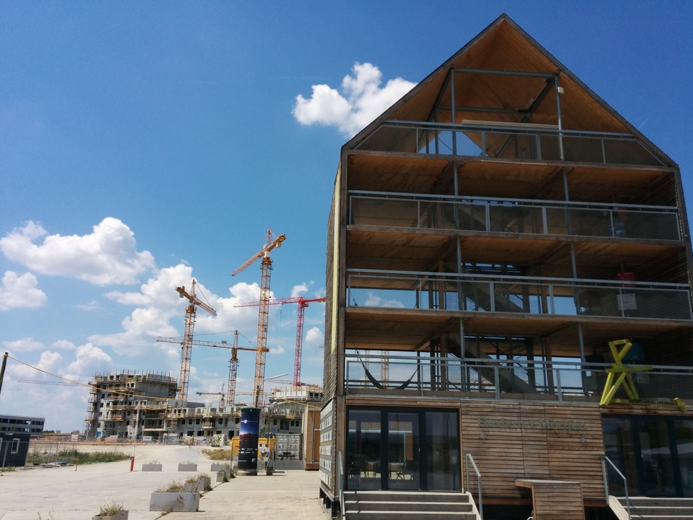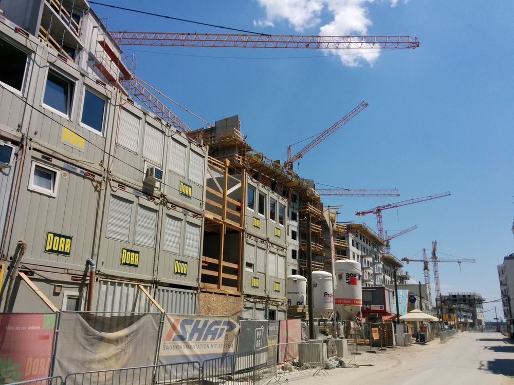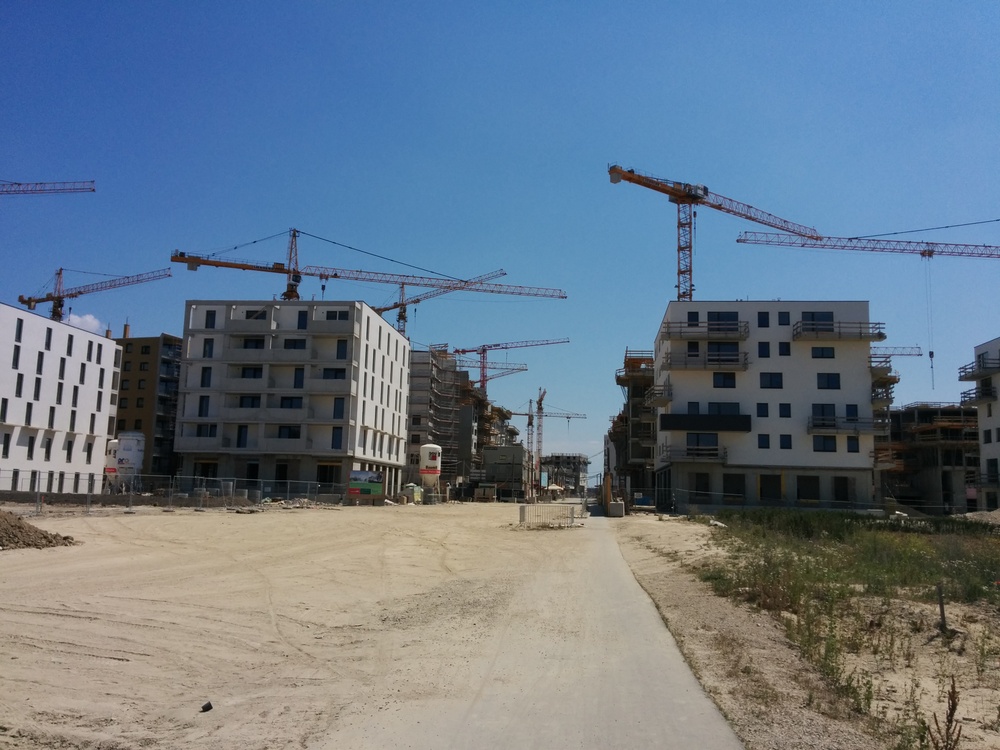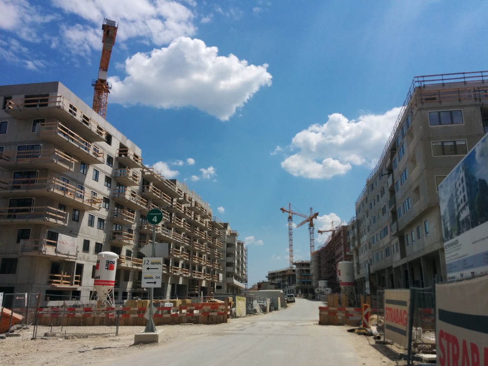 Bilder von der Großbaustelle in der Seestadt Aspern. Das Stadtentwicklungsgebiet, eines der größten Wiens, wird auf dem ehemaligen Flugfeld Aspern errichtet und soll mit 2018 fertiggestellt sein
