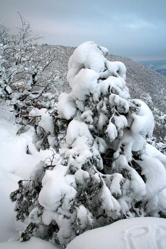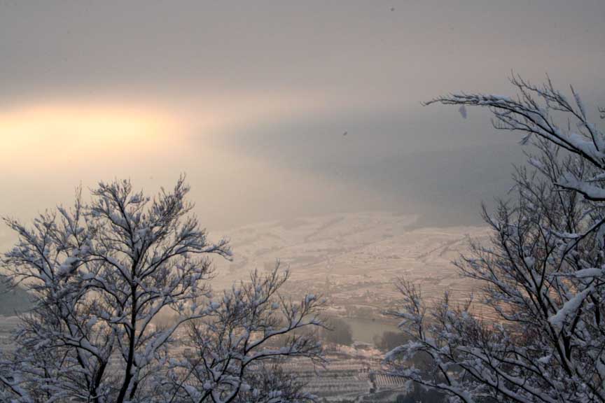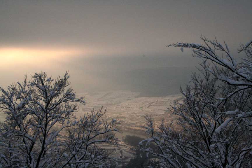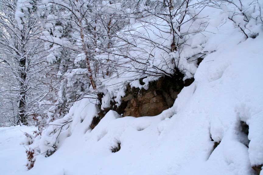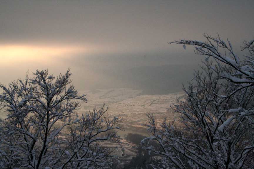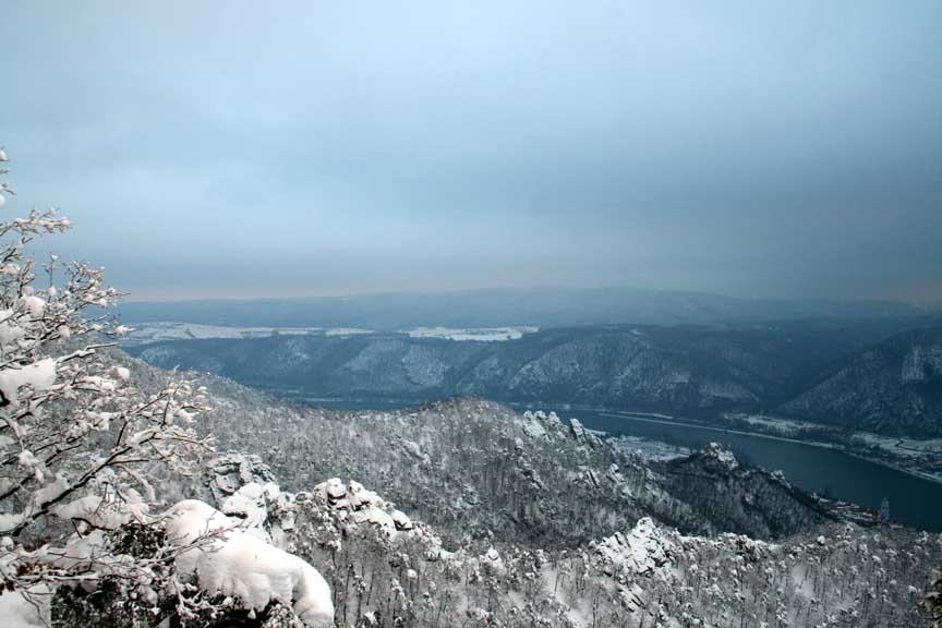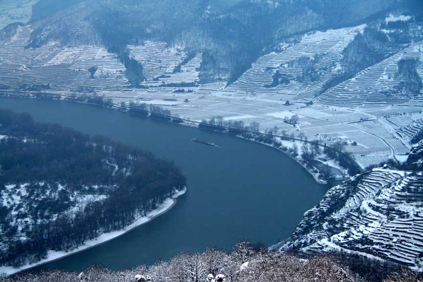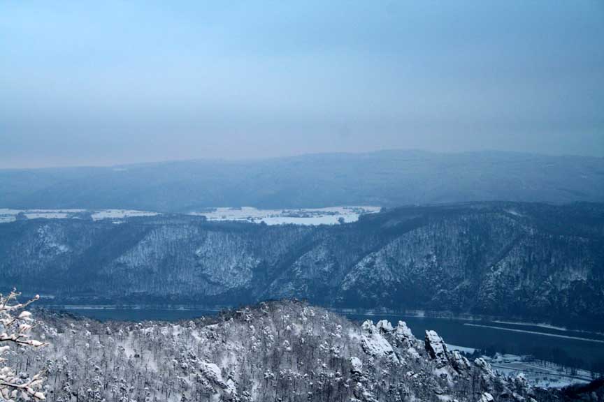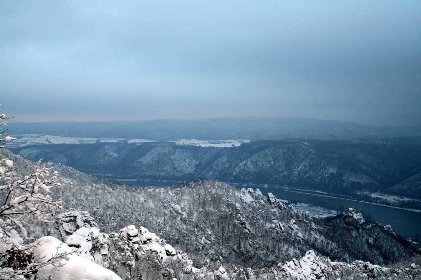Am 8. Jänner 2006 habe ich mich zum Fotografieren zum Wächterfelsen begeben. Dieser liegt oberhalb von Dürnstein, vis-a-vis von Rossatz. Man hat Ausblick über einen großen Teil der Donauschleifen in der Wachau in dieser Region. Für die Fotos durchstreifte ich dabei Wälder durch hohe Schneemassen.