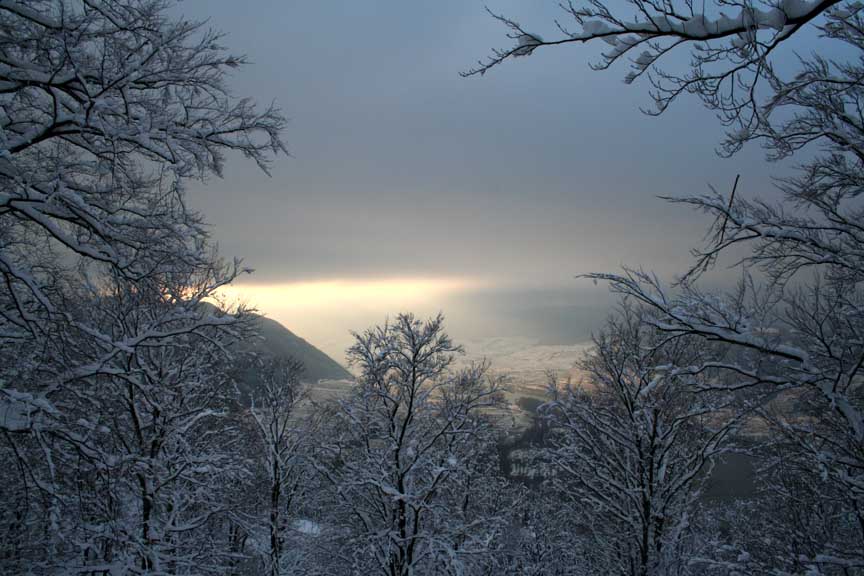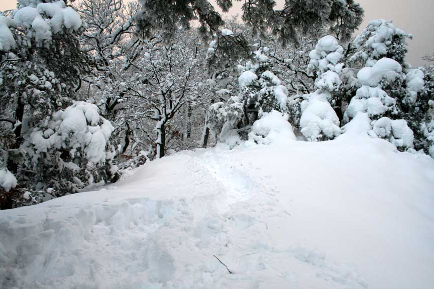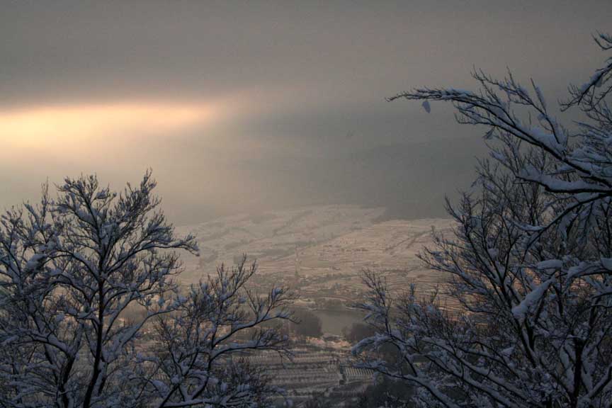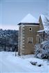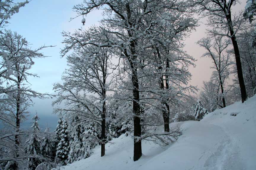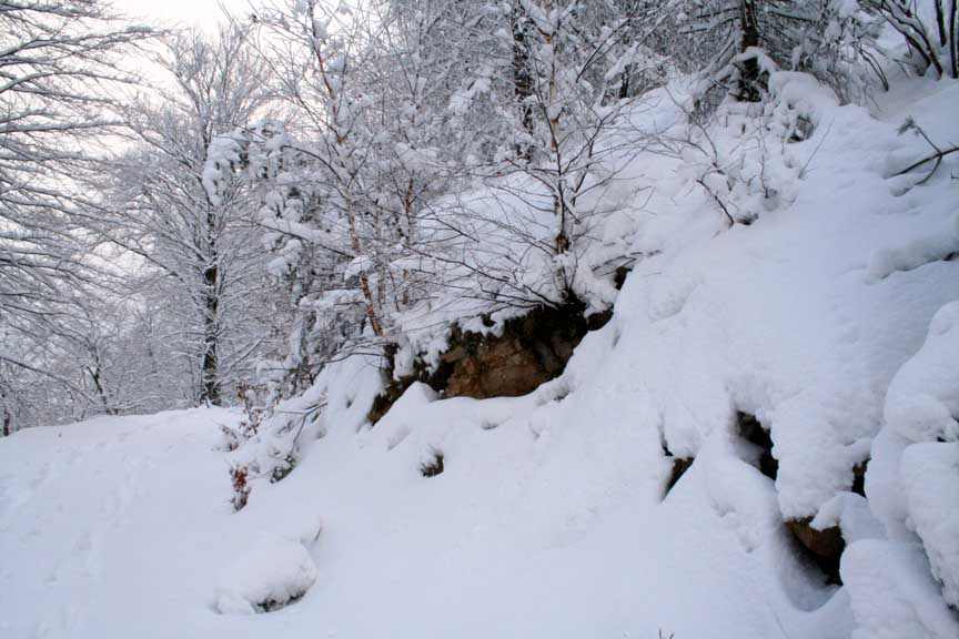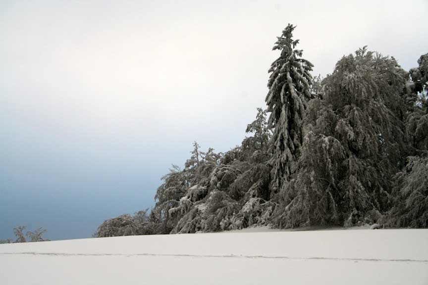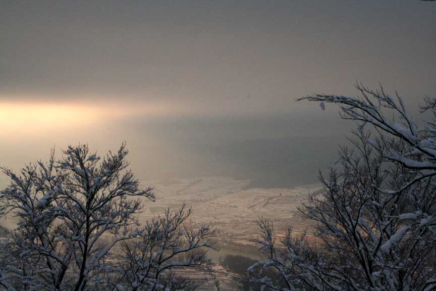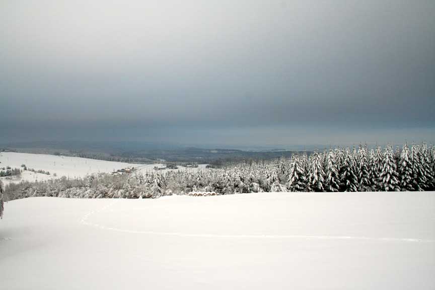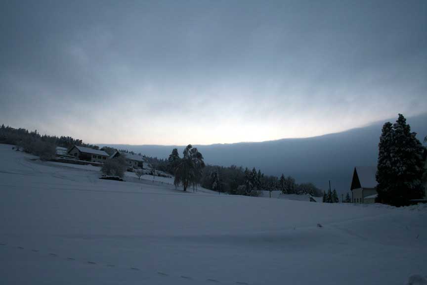 Am 8. Jänner 2006 habe ich mich zum Fotografieren zum Wächterfelsen begeben. Dieser liegt oberhalb von Dürnstein, vis-a-vis von Rossatz. Man hat Ausblick über einen großen Teil der Donauschleifen in der Wachau in dieser Region. Für die Fotos durchstreifte ich dabei Wälder durch hohe Schneemassen.