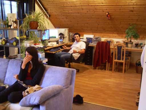 Stefans Wohnung nach Umbau (Petra links, Stefan am PC)